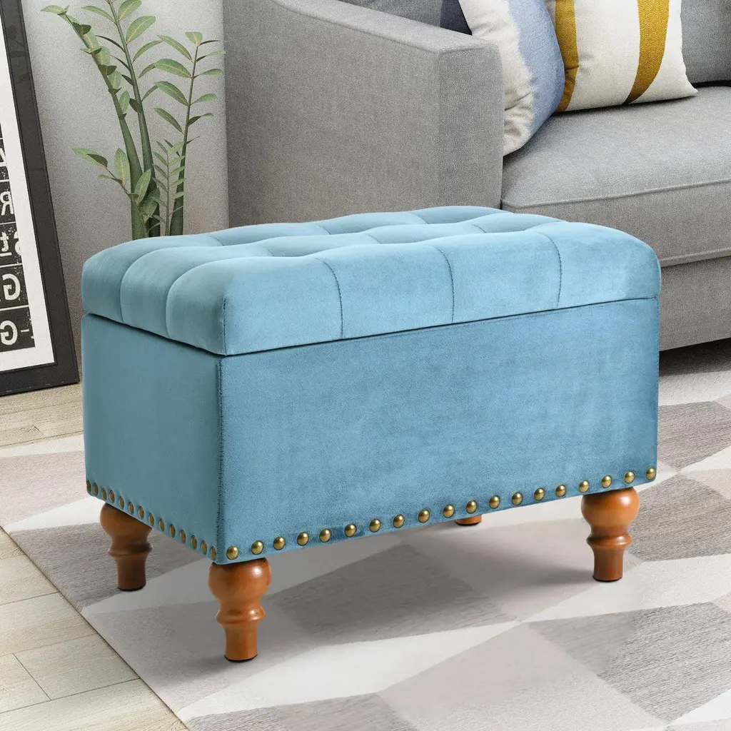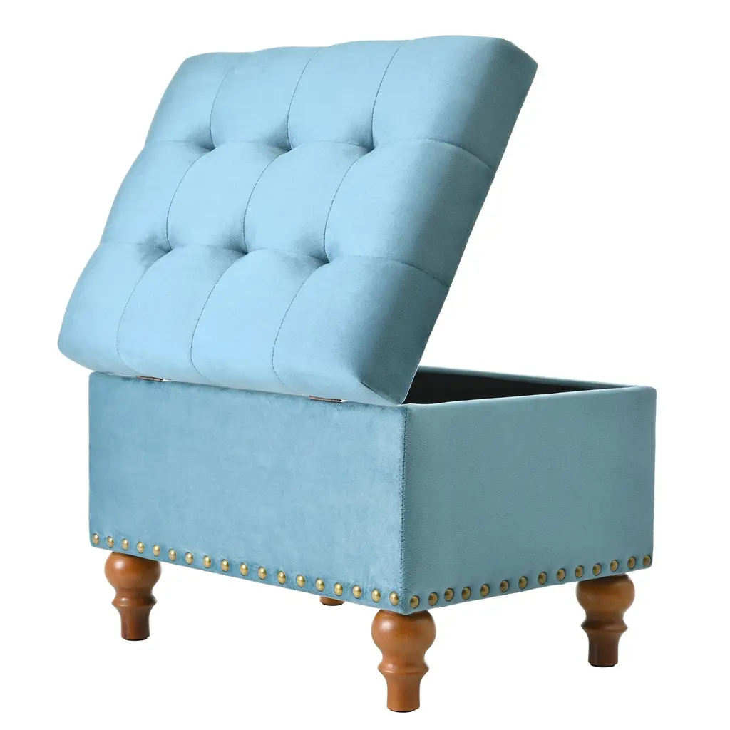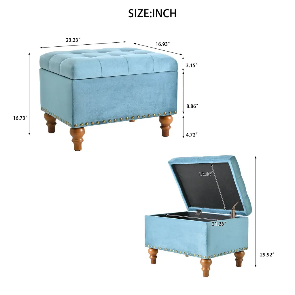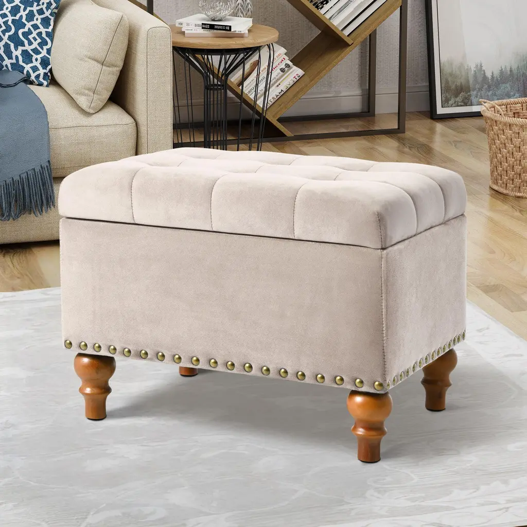 The elegant, retro-style riveted design is the embodiment of the fashion concept, giving your home a sophisticated design that matches perfectly with any space. It can be used as a shoe change stool, storage stool, coffee table and extra stool in the living room.【High Quality Fabric】 :High quality linen fabric with Ottoman design, skin friendly, breathable, and filled with high density sponges make this Ottoman sit very comfortable.【Convenient Hinge Design】 :With the help of this convenient hinge, you can open and close the Ottoman's lid very easily. Top easily lifts to reveal a storage compartment, and comes with a child safety hinge to prevent lid slamming.【Comfortable and Durable】 :Cream velvet fabric with storage ottoman design, filled with high density sponge makes this ottoman sit very comfortable. With a sturdy solid wood frame, durable wood legs and durable hinges, the padded top can stay open when you open it completely. You don't have to worry about it closing. Designed for long lasting use. Withstand 300 pounds of weight.【Extra Hidden Storage Space】 : Ottoman seats provide extra storage space to neatly organize toys, pillows, or magazines. Secret compartments protect your privacy and keep your household items organized and clean. At night, it can provide a comfortable rest for your tired feet and can provide an extra stool for your friends.【Easy To Install】 :Easy to install, without any tools, just screw on 4 legs, you can add an exquisite ottoman to your living room or bedroom.