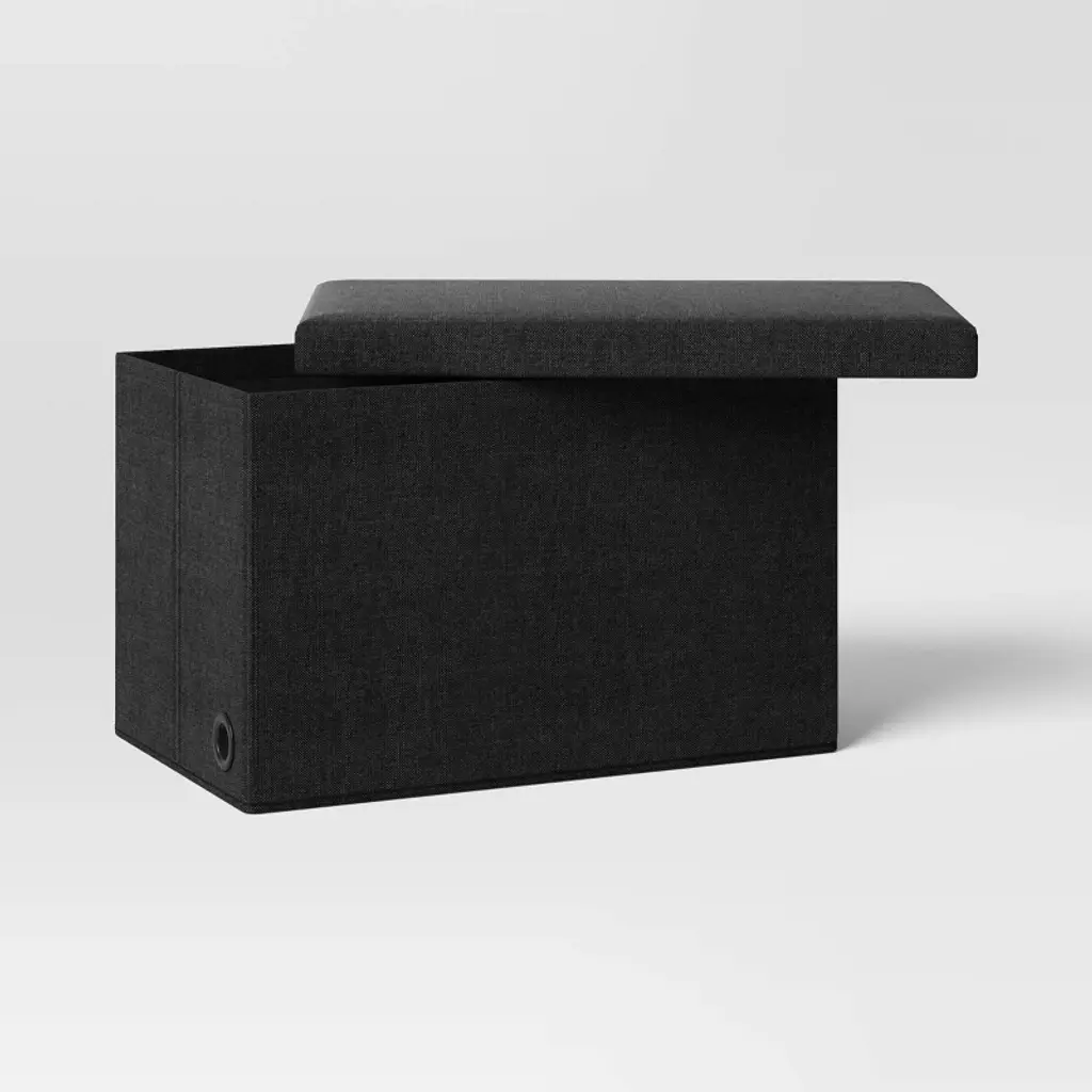 24" Collapsible Double Storage Ottoman Black - Room Essentials™: