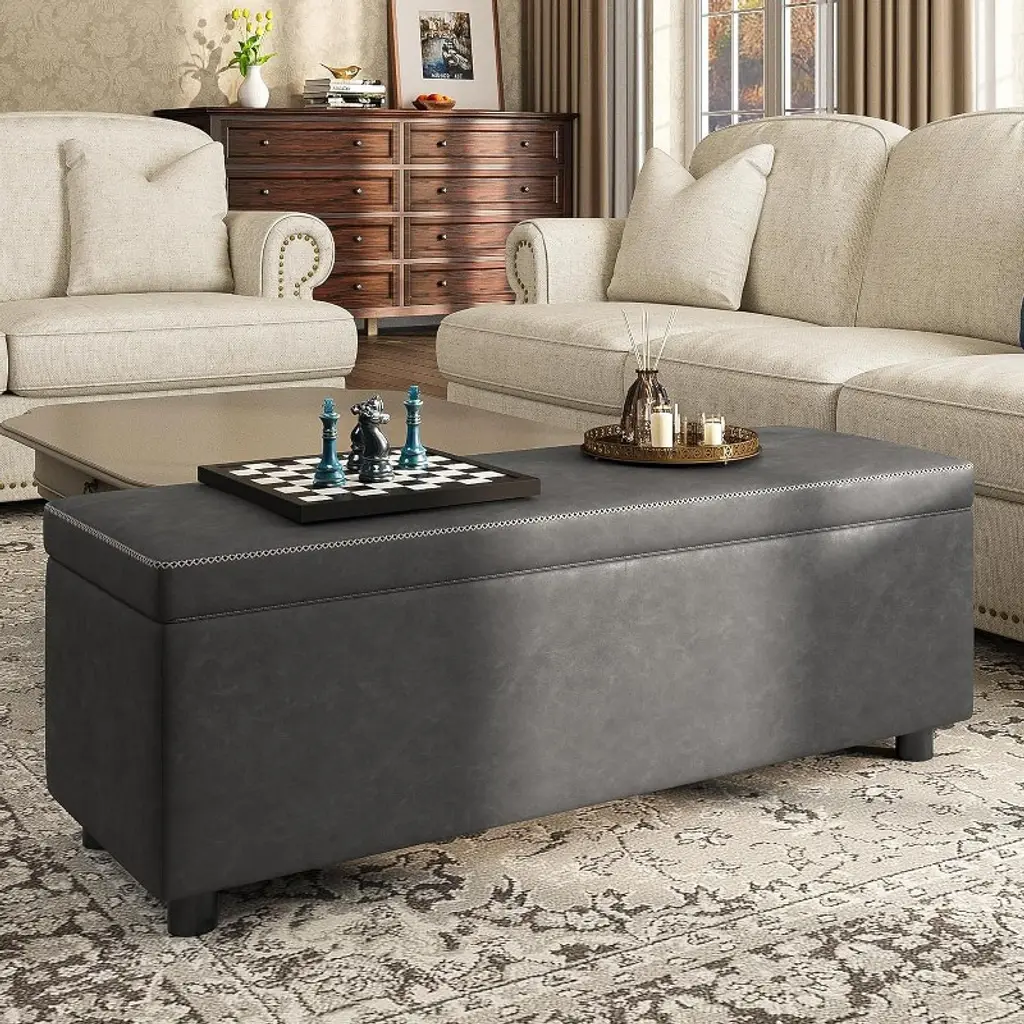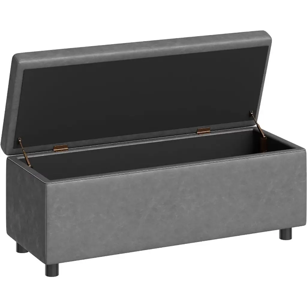 43.5" Faux Leather Storage Ottoman Bench With Stitching And Safety Hinges For Bedroom & Entryway