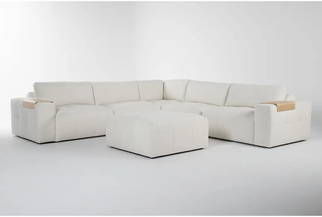 Amallo Ivory 6 Piece Power Reclining Sectional With Right Arm Facing Cuddler Chaise & Bunching Storage Ottoman Set