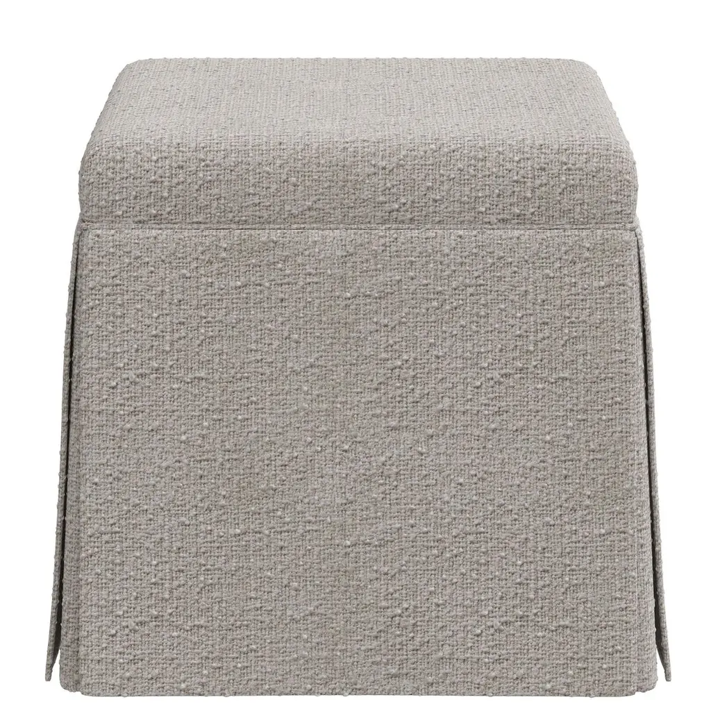 Made in the USA and upholstered in plush bouclé-like fabric, this skirted ottoman is a true multitasker. Its padded top lifts open to reveal welcome hidden storage. And when you're not using the ottoman as a footrest or extra seating, you can top it with a tray and use it as an occasional table.