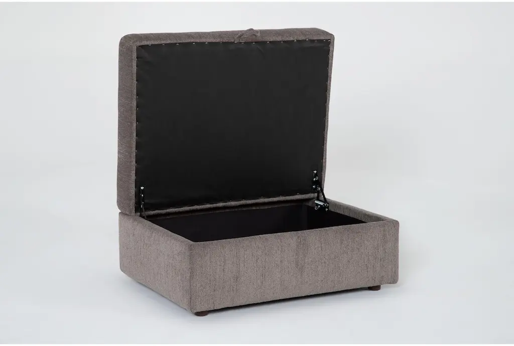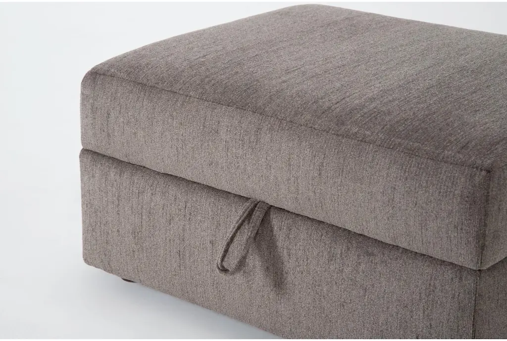 The Basil Grey Brown Fabric Storage Ottoman is the perfect addition to your living room. Its modern design and neutral tones blend seamlessly with any decor, providing both functionality and style. With 100% polyester fabric, this ottoman offers durability and comfort.