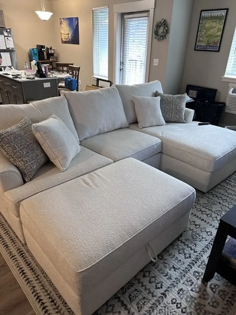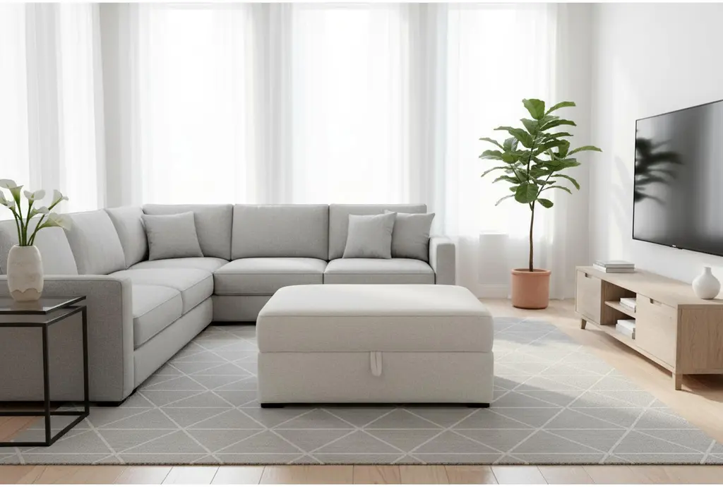 The Belinha II Opal White Fabric Rectangle Storage Ottoman is a stylish and functional addition to any living room. With its cream fabric upholstery, this ottoman brings a soft and inviting feel to your space. Designed with a storage compartment, it offers a practical solution for keeping your room tidy.