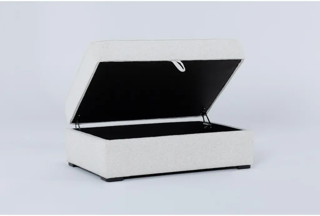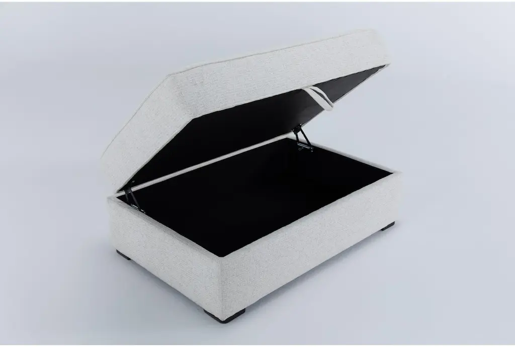 Belinha Ii Opal White Fabric Rectangle Storage Ottoman