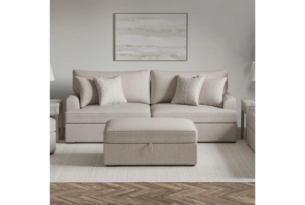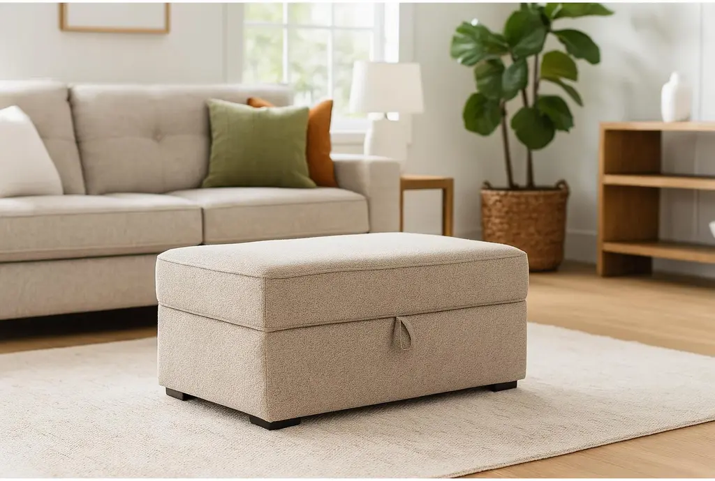 Belinha Ii Taupe Beige Fabric Storage Ottoman