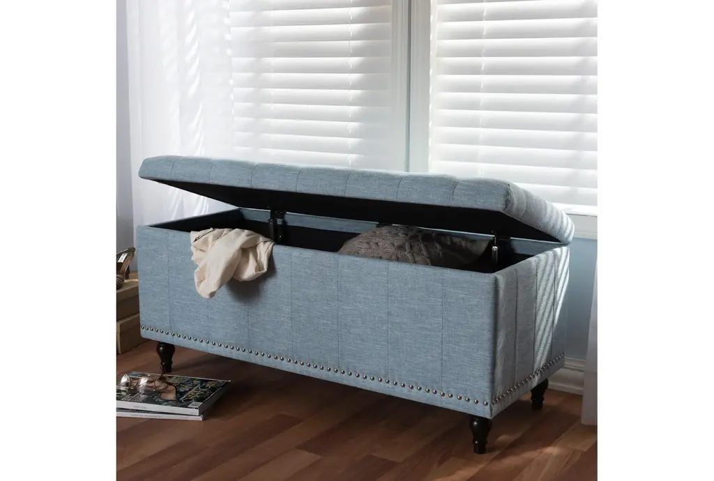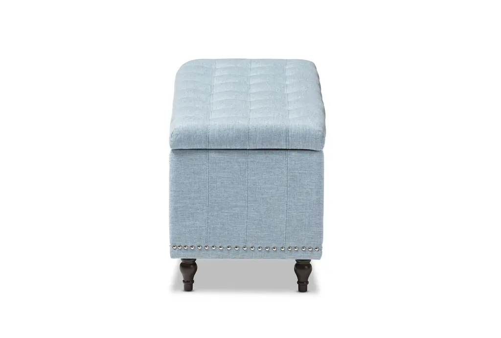 The Bjorn Light Blue Fabric Upholstered Button-Tufting Storage Ottoman Bench is a versatile addition to any entryway or living space. Its modern design and light blue fabric upholstery make it a stylish and functional piece. The bench features button-tufting and quilted detailing, adding a touch of sophistication to your home.