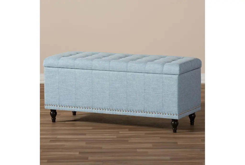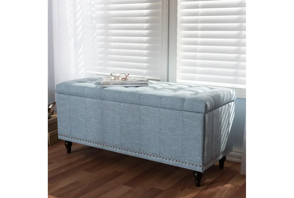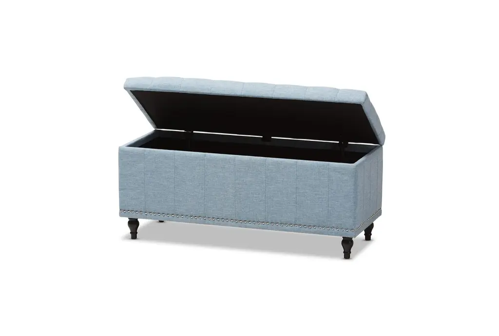 Bjorn Light Blue Fabric Upholstered Button-Tufting Storage Ottoman Bench | Entryway | Shoe Bench