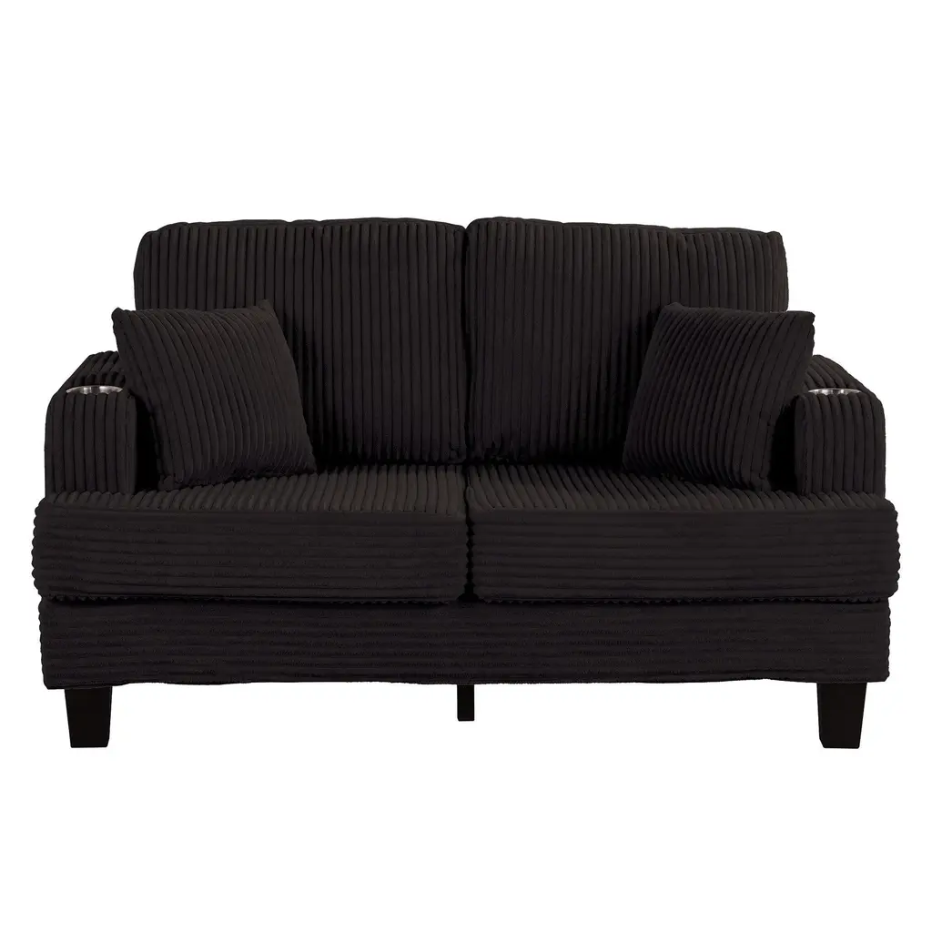 Black 3 Piece Set Comfy Sofa Couch 3-Seater & Loveseat Sofa With Storage Ottoman For Living Room With Usb, Side Pockets, Pillows Included - Black / 3-Seater Sofa