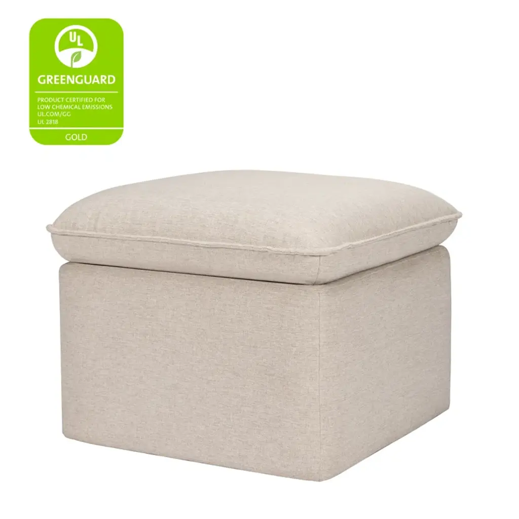 The Cali Storage Ottoman is the perfect blend of style and function. This versatile piece has ample storage for all your baby's extra toys, blankets, and more. The easy-to-lift lid is supported by a soft open and close mechanism to help prevent little fingers from getting caught. Upholstered by hand in our eco-performance fabric, this trendy ottoman can be paired with the Cali Swivel Glider to create a statement piece in your nursery or home.