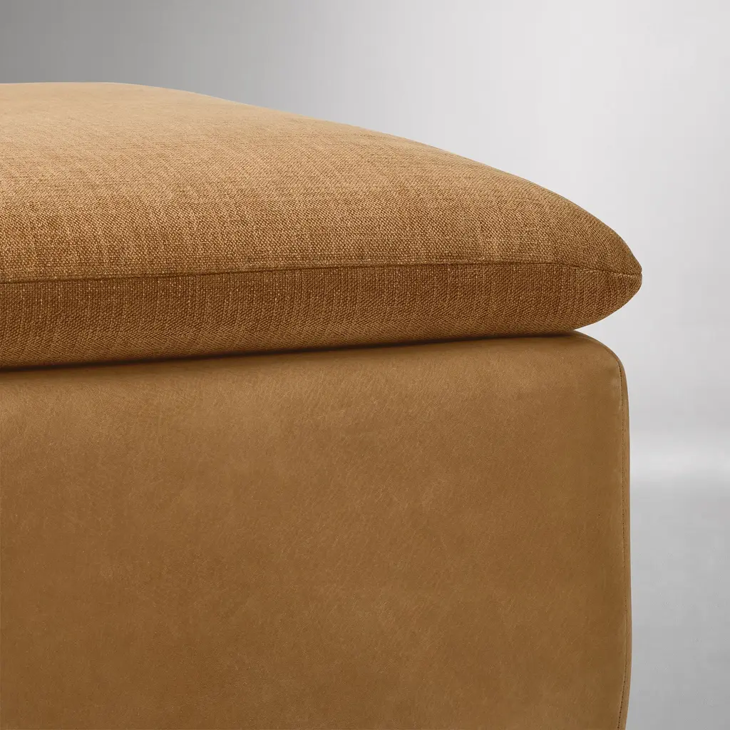 A stylish update on chic ’70s mod design. The contemporary appeal of its two-tone, mixed-material upholstery. There's plenty of storage space in the ottoman for throws, pillows and more. Made from kiln-dried, sustainably sourced wood. Contract Grade, so you know it’s built to last.