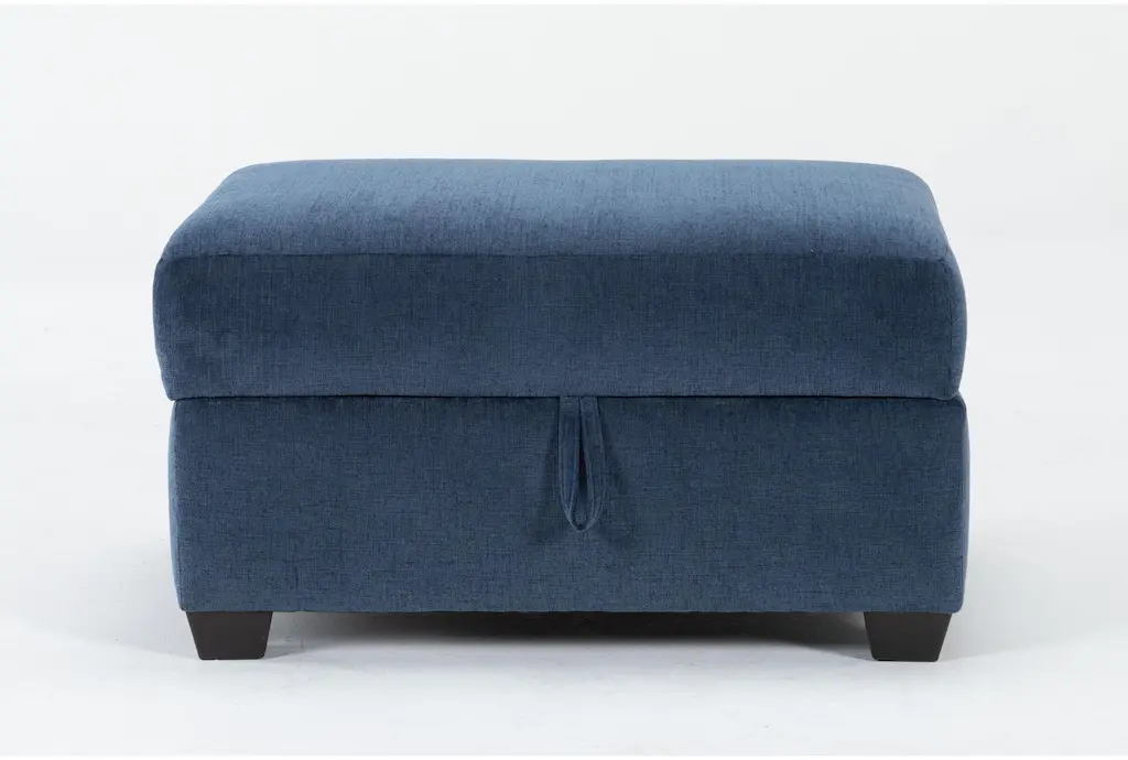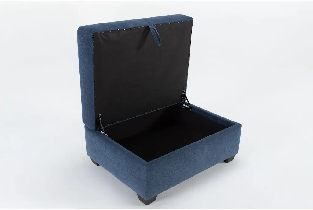 Colby Navy Blue Fabric Rectangle Storage Cocktail Ottoman