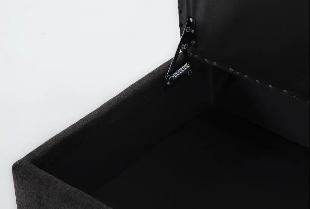 Introducing the Colby Smoke Grey Fabric Rectangle Storage Cocktail Ottoman, a versatile addition to any living or bedroom space. Its Madigan Smoke color and casual style make it the perfect piece to complement your existing decor. This ottoman features convenient storage and sturdy tapered legs, ideal for both function and style.