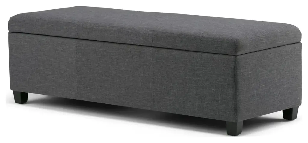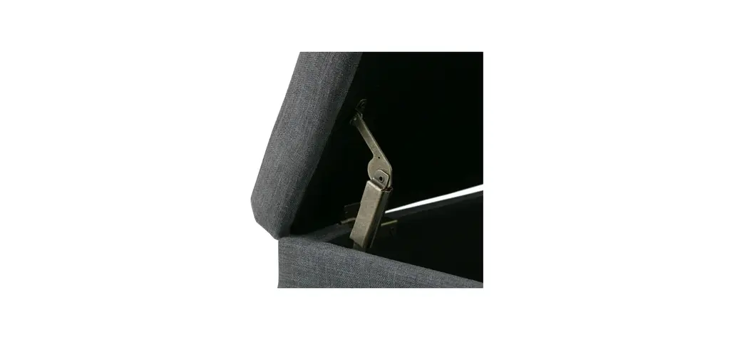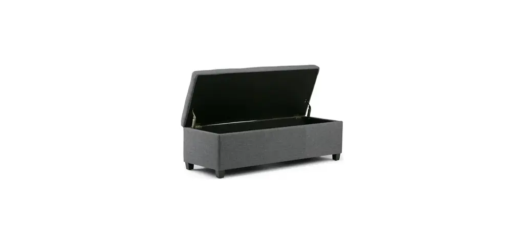 DIMENSIONS: 48"W x 18.1"D x 16.1"HHand constructed using solid wood, engineered wood and high density foamFeatures large interior storage space with child safety hinge to prevent lid slammingMultifunctional ottoman can be used as accent furniture or to provide additional seating in a bedroom, living room, or family room, or in a hallway as an entryway benchContemporary design includes stitching detail