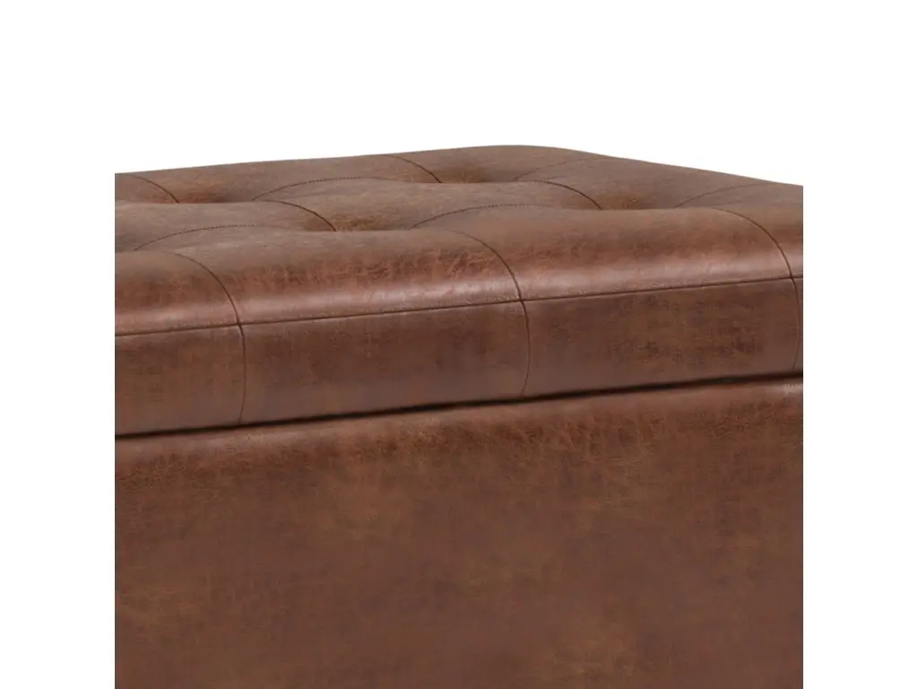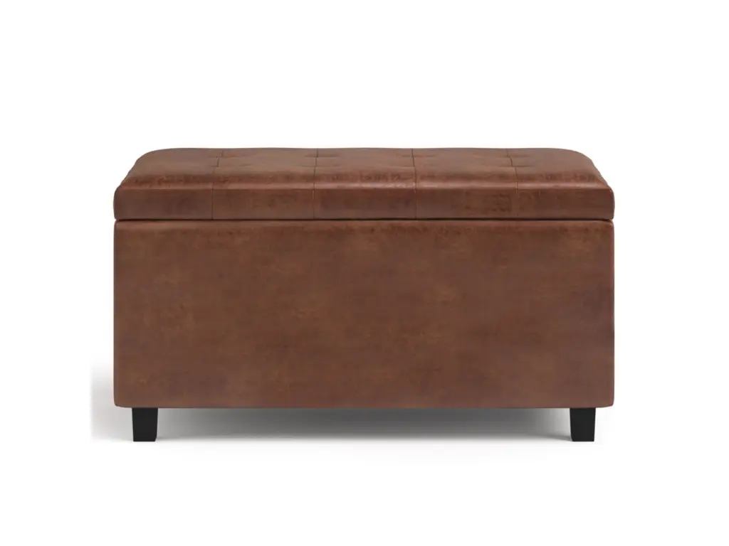 Why sacrifice function for beauty? For a stylish solution to your storage needs, look no further than the Cosmopolitan rectangular storage ottoman. The unit is made from durable faux leather and is extra strong and durable, featuring a beautiful tufted exterior and plenty of interior storage room. Whether you use this ottoman in your entryway, living room, family room, basement or bedroom, it will allow you to hide away all that mess.