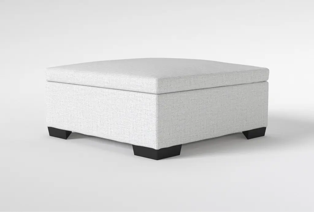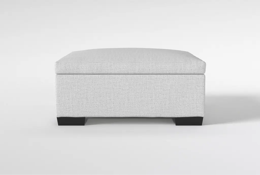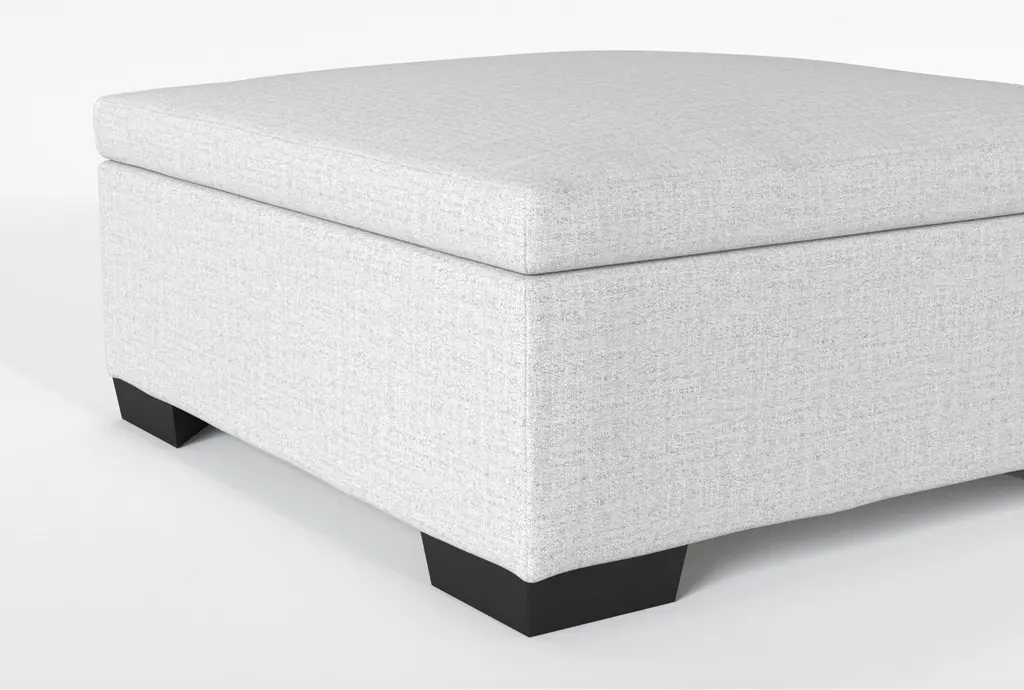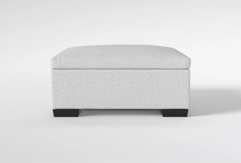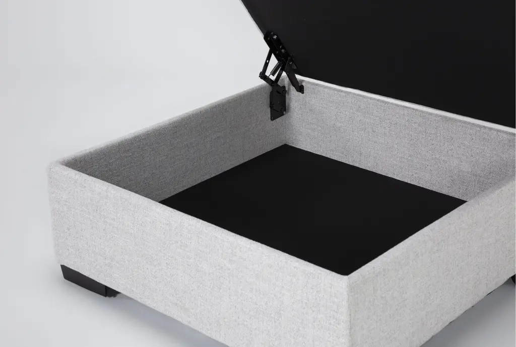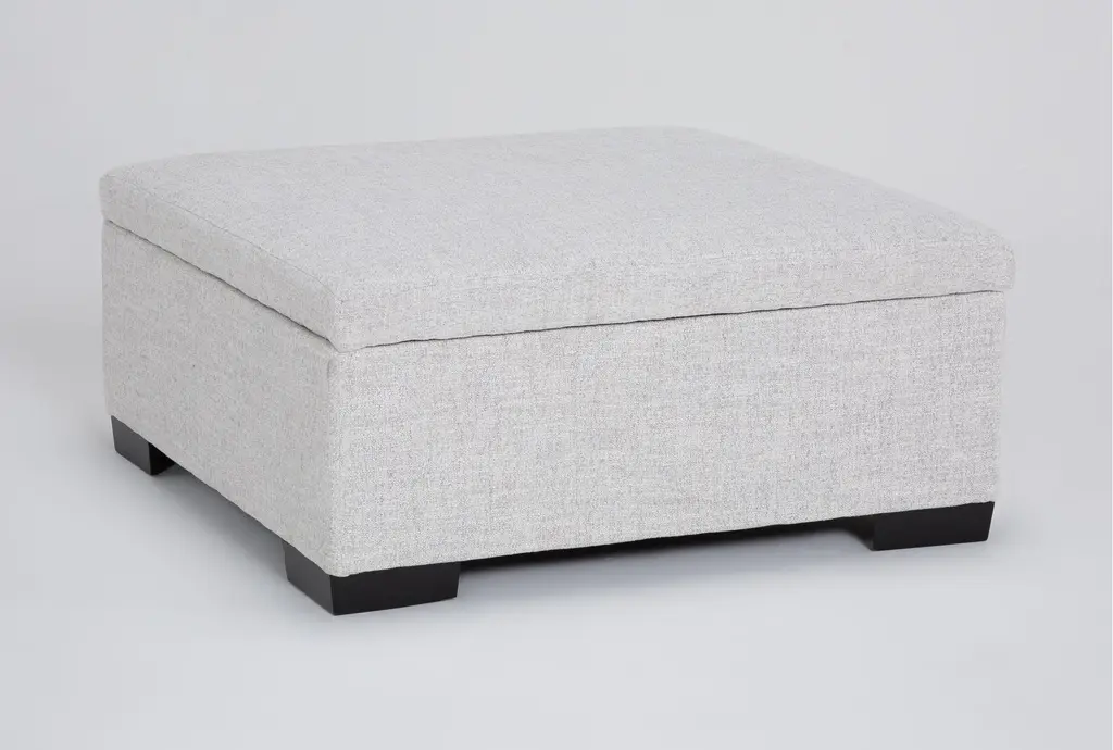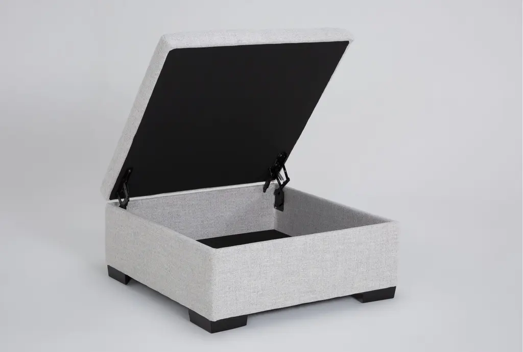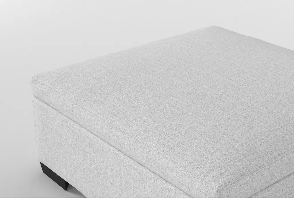 Unwinding always sounds appealing, but it's even more so with our grand Delano accent storage ottoman. Featuring a spacious design, it serves as footrest and coffee table, where you can stretch out your legs or set down trays of snacks and accents. As an added bonus, clutter easily tucks away in the storage compartment. Through our Special Order program, you can customize the fabric at no extra cost.
