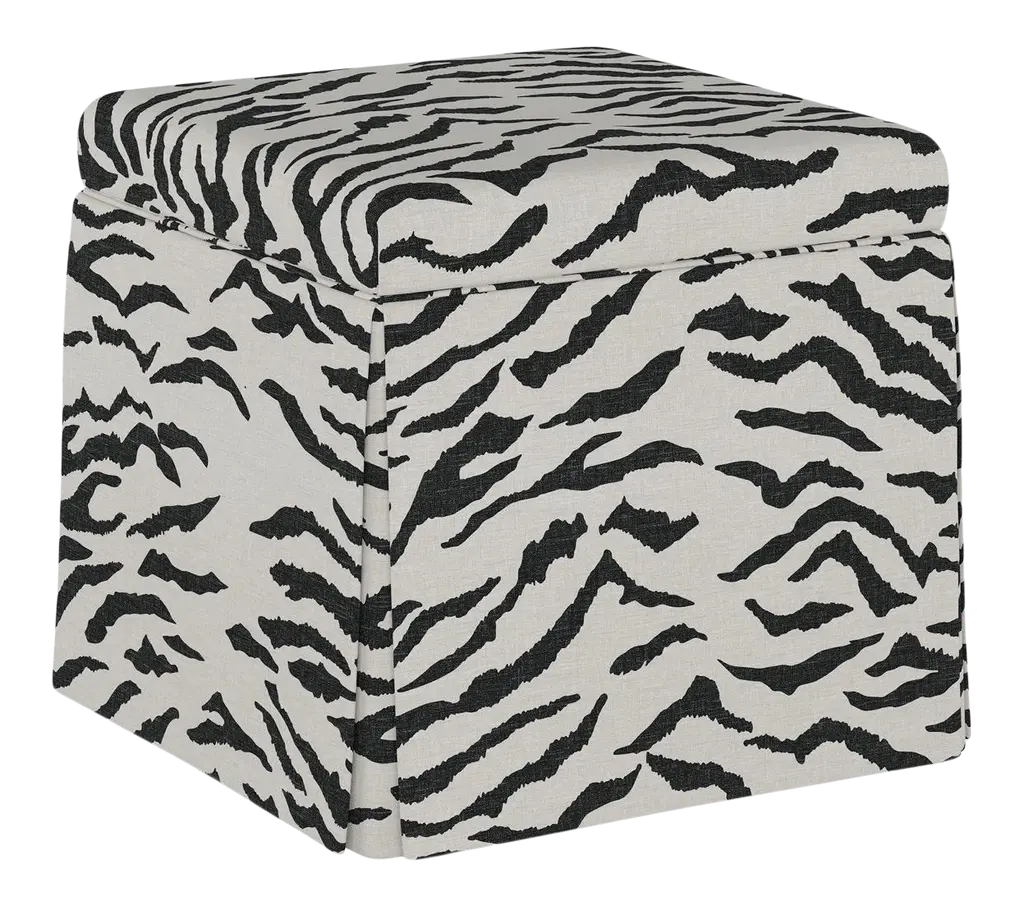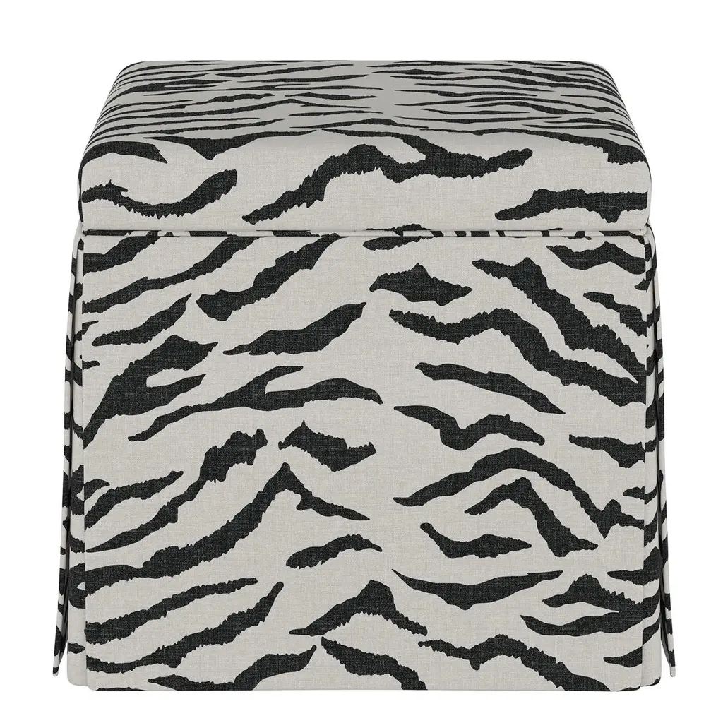 Dyer Storage Ottoman In Cream Black Linen Zebra