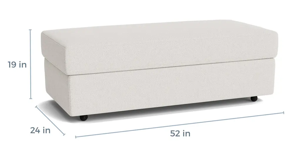 19 x 52 x 24 Storage Ottoman with comfort and style comes available in over 40 different fabrics and leather options. Buy now or customize your own!