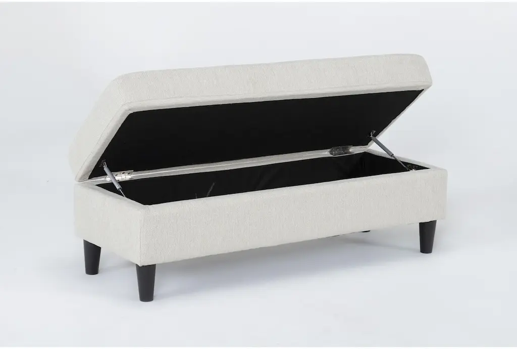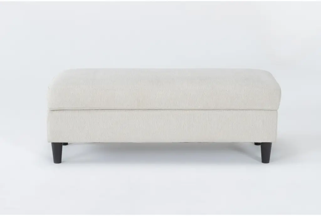 Emery Chiffon White Fabric Storage Cocktail Rectangle Ottoman