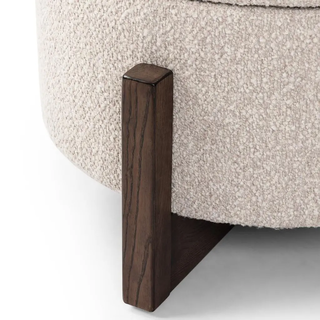 Ester Rustic Lodge Beige Performance Boucle Round Storage Ottoman - 25"