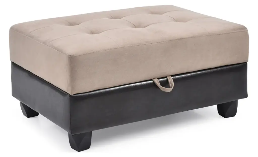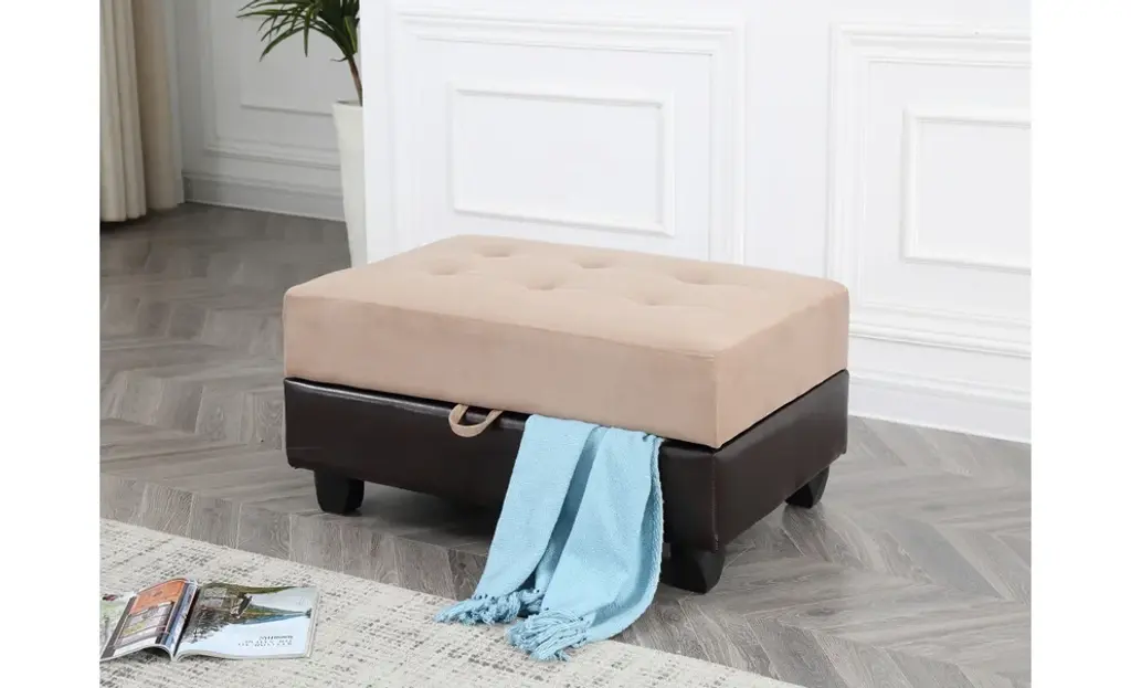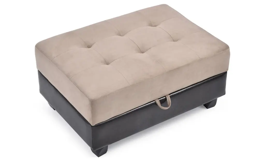 Tufted ottoman covered in durable soft micro suede. High density foam as well as springs are used for additional support and comfort. A perfect choice for your home.Features:Tufted seatingStorage ottomanAssembledHigh density foam seatingWood frameDurable resin legs
