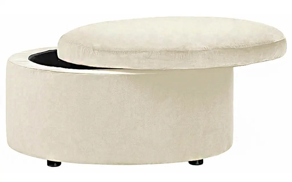 Holland Parchment Performance Round Storage Ottoman - 30”