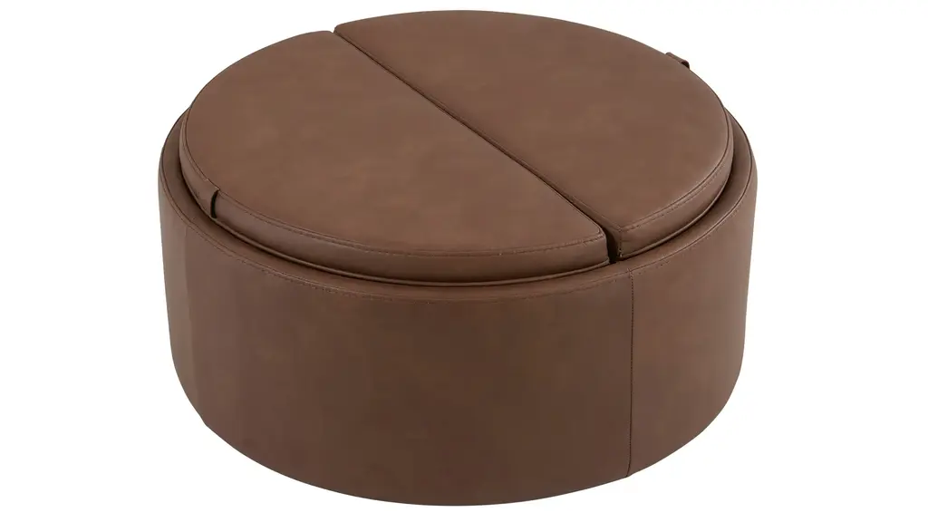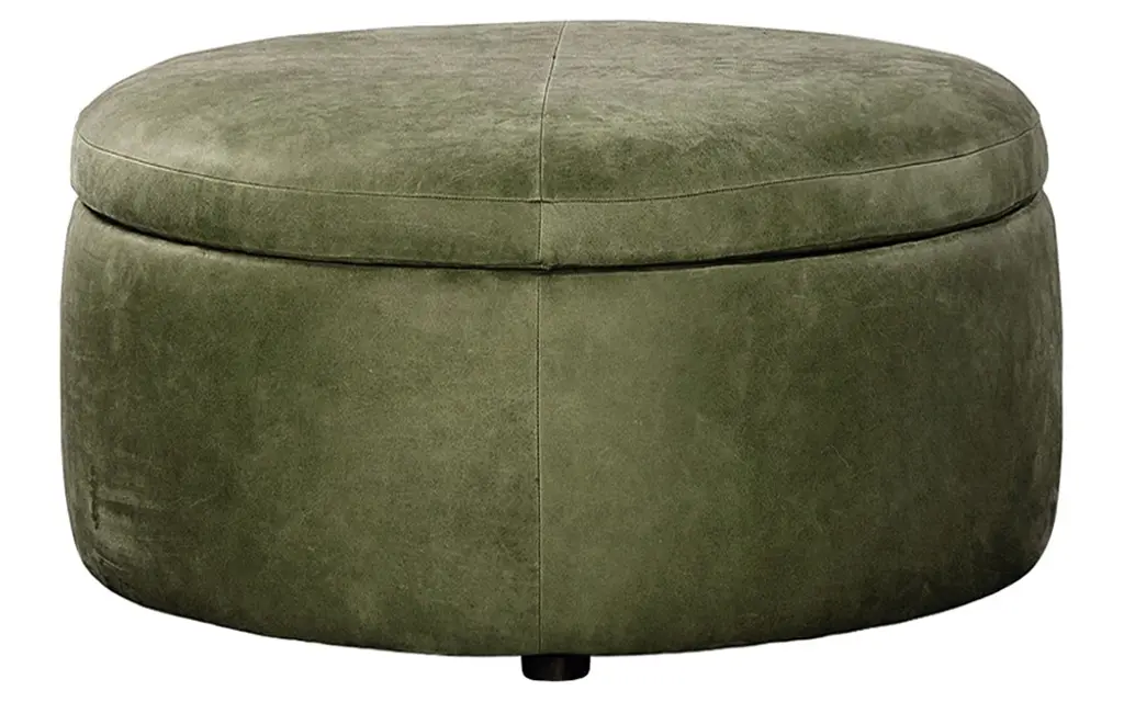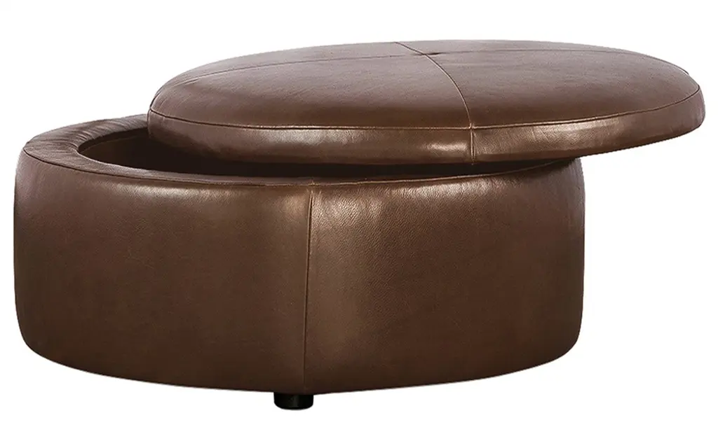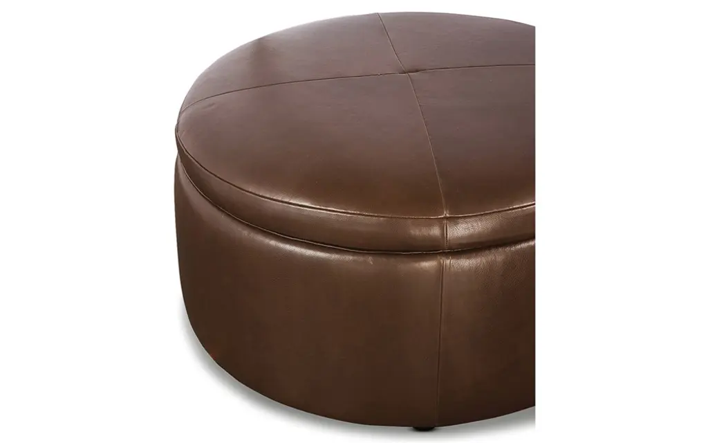 Holland Whisky Leather Round Storage Ottoman - 30”