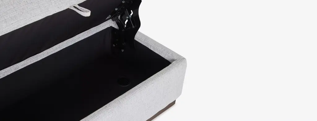 The perfect sidekick to your Holt Petite Modular Collection, this half storage ottoman provides just the right amount of room to stash essentials, while also providing a little extra leg room, or even a console-like table top. Need a discreet place to contain living room clutter? The Holt Petite Half Storage Ottoman brings the perfect amount of storage to your space without taking up too much room. Easily affixed vertically or horizontally, you get to call the shots on how to configure your modular set up!