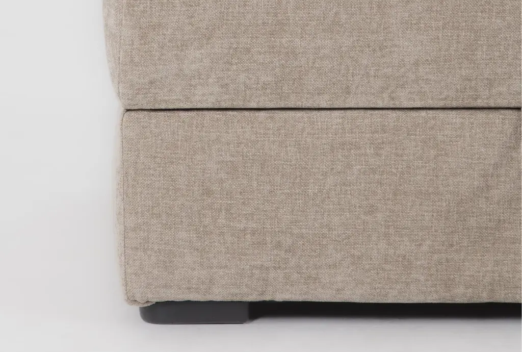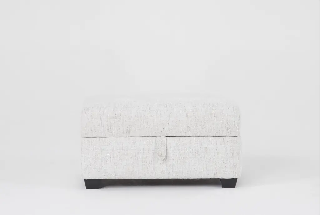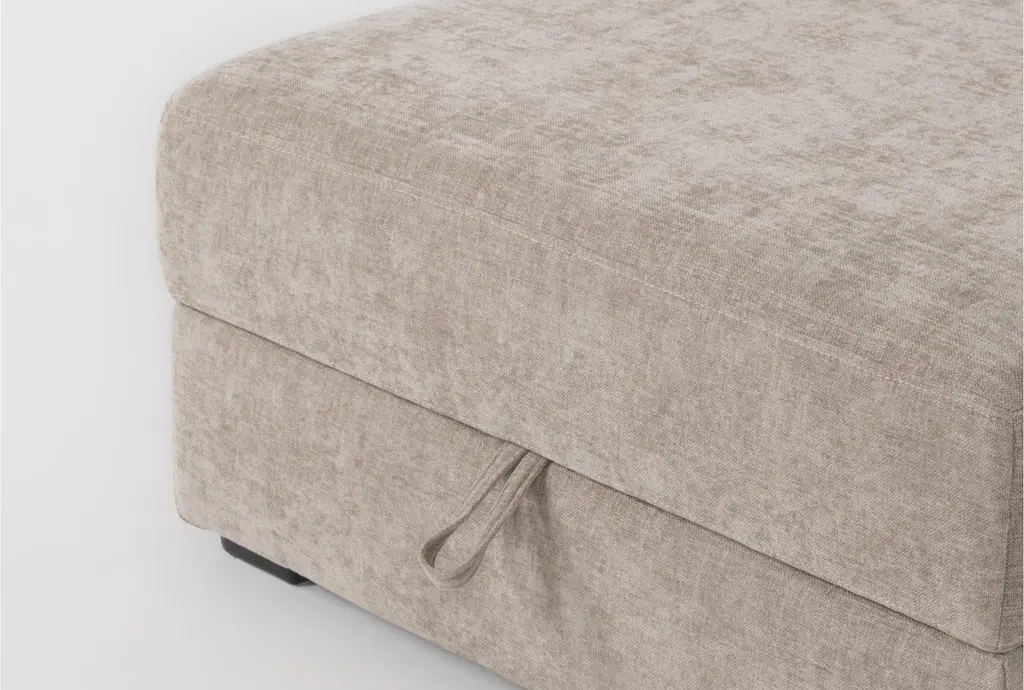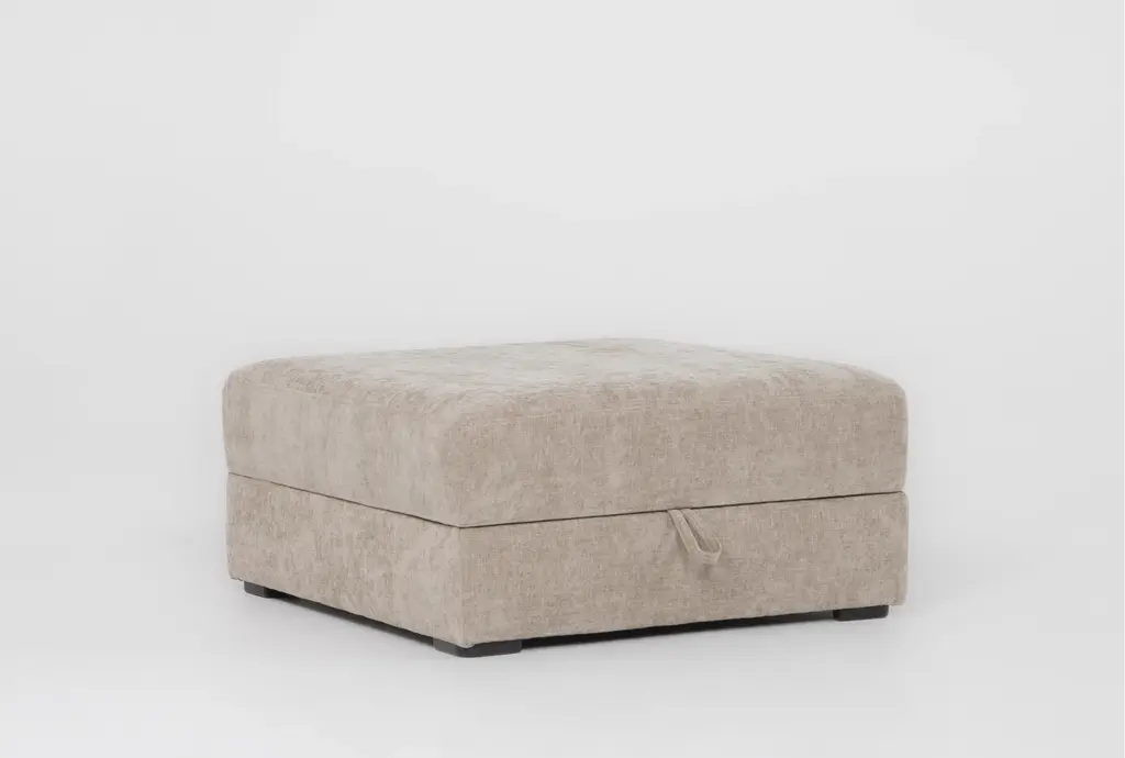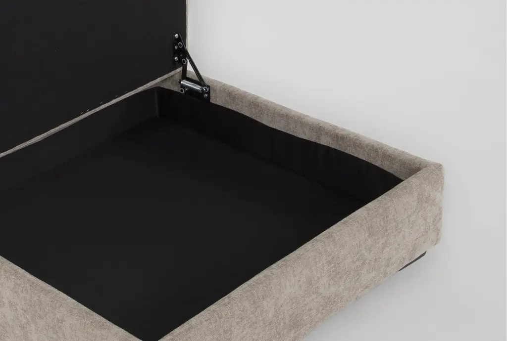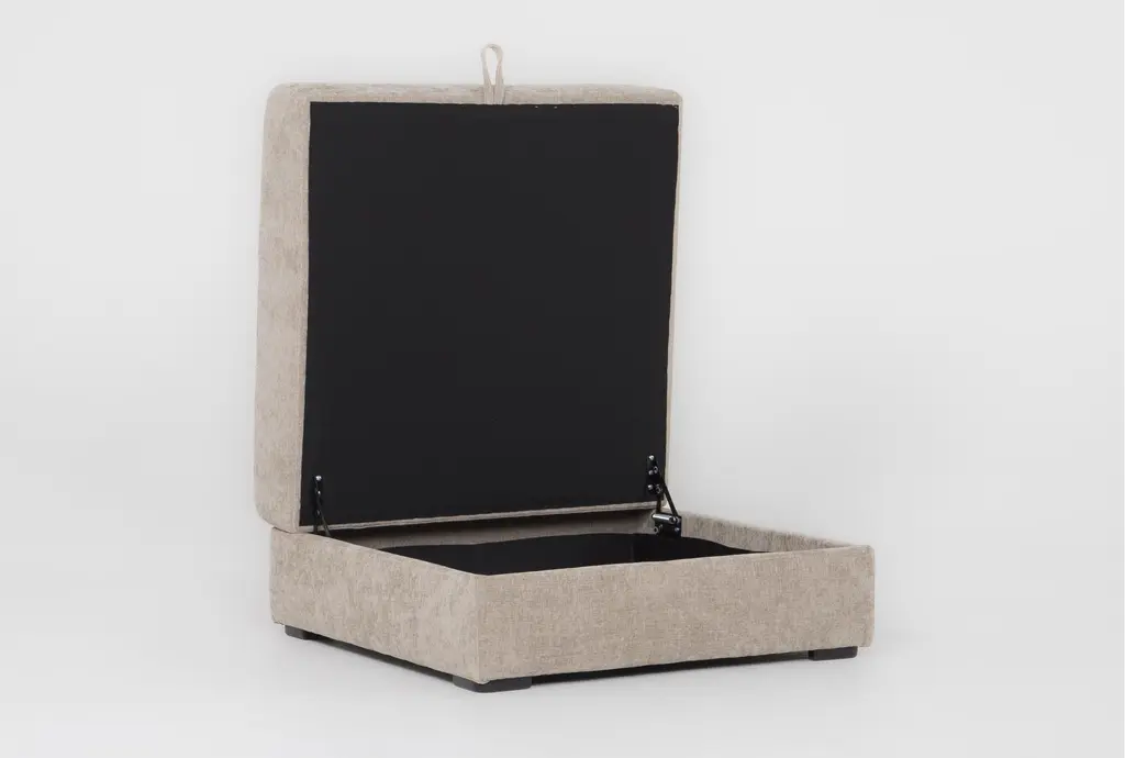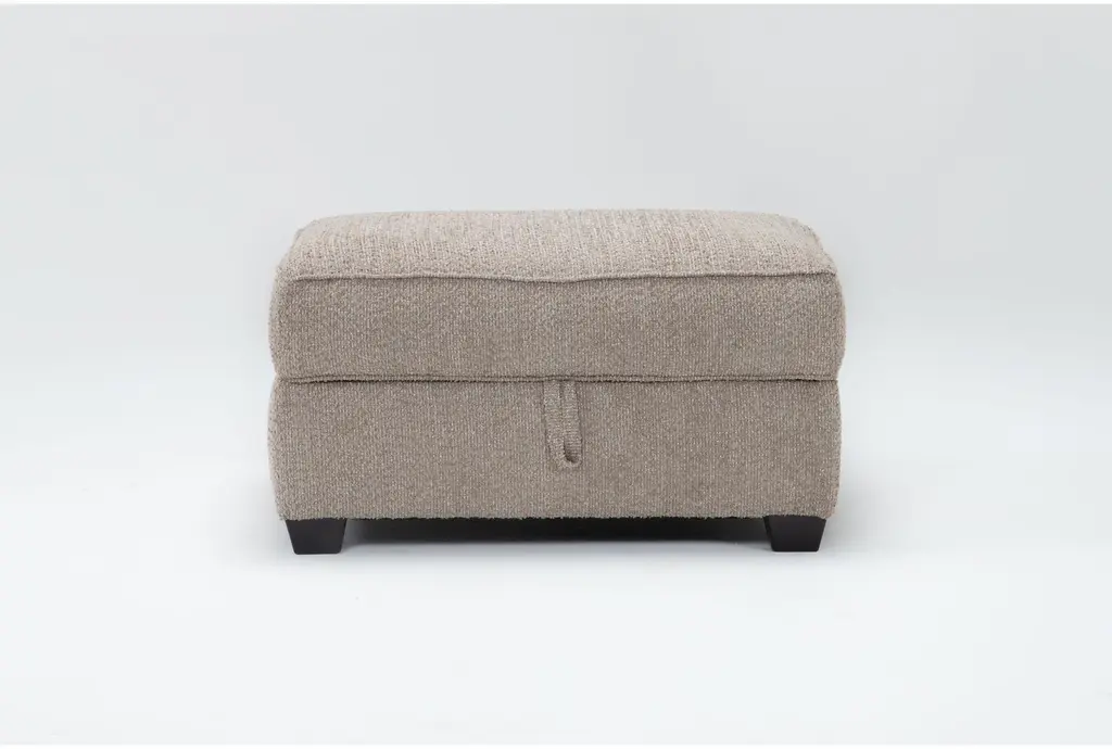 Introducing the Kai Mocha Cocktail Storage Ottoman, a modern piece designed to enhance your living room. This rectangular ottoman features a mocha color and is upholstered in fabric made from 100% polyester. It combines style and functionality with its built-in storage compartment.