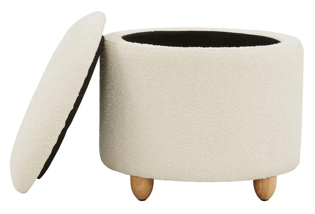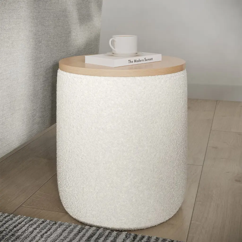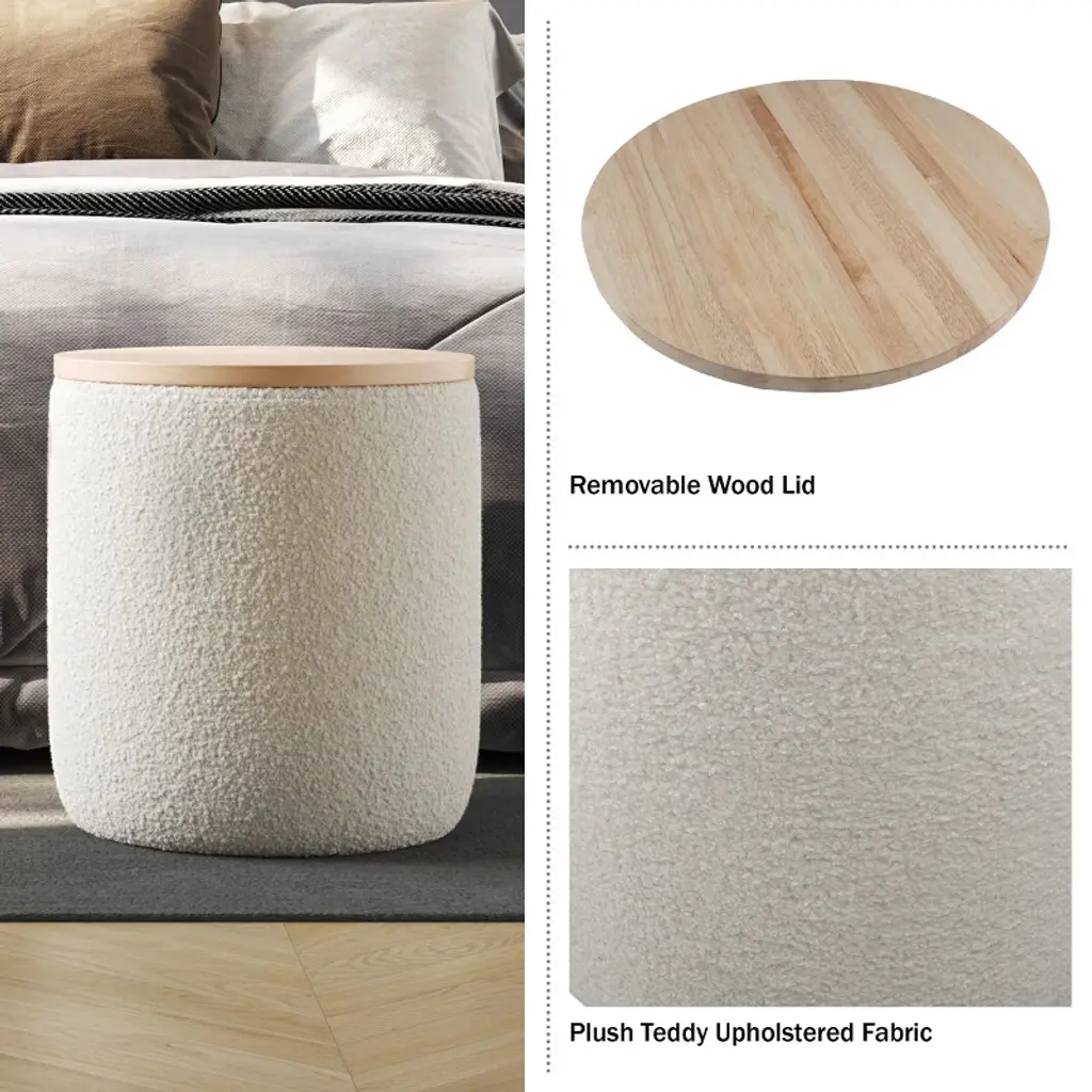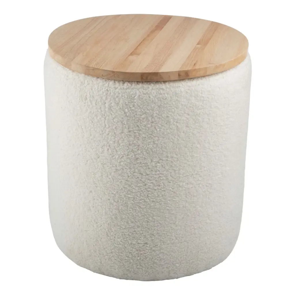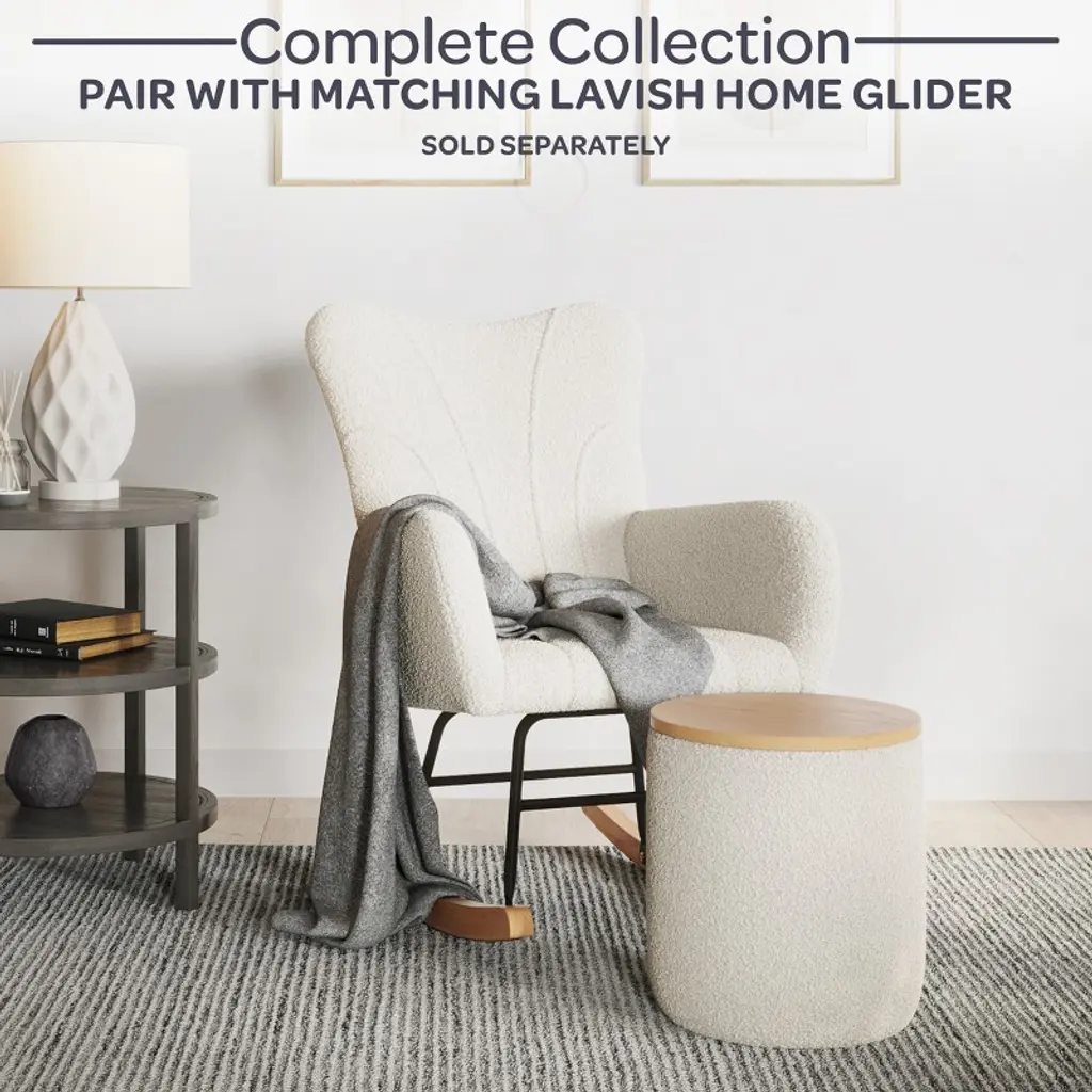 Bring the best of style and function to your home with the Round Ottoman with Storage by Lavish Home. This comfortable ottoman with storage for living room features a premium plush teddy upholstered fabric outer cover with a functional wood tray top lid that can be used to set drinks, snacks, phones, TV remotes, and other accessories. The modern, clean lines on the small ottoman bring a mid-century modern style to your home and can be paired with the matching Lavish Home Rocking Chair for a cohesive collection that’ll look great in your living room, bedroom, or office.