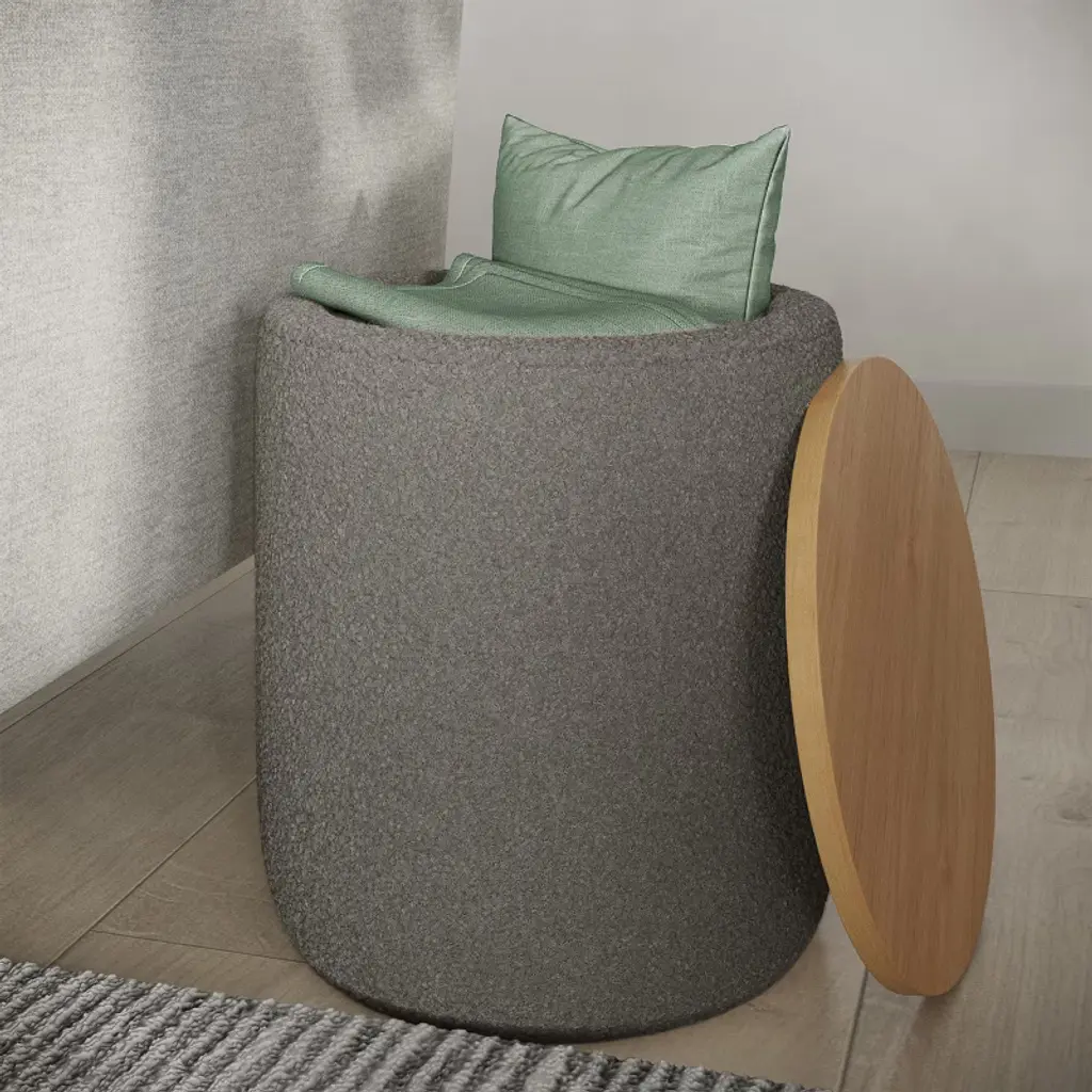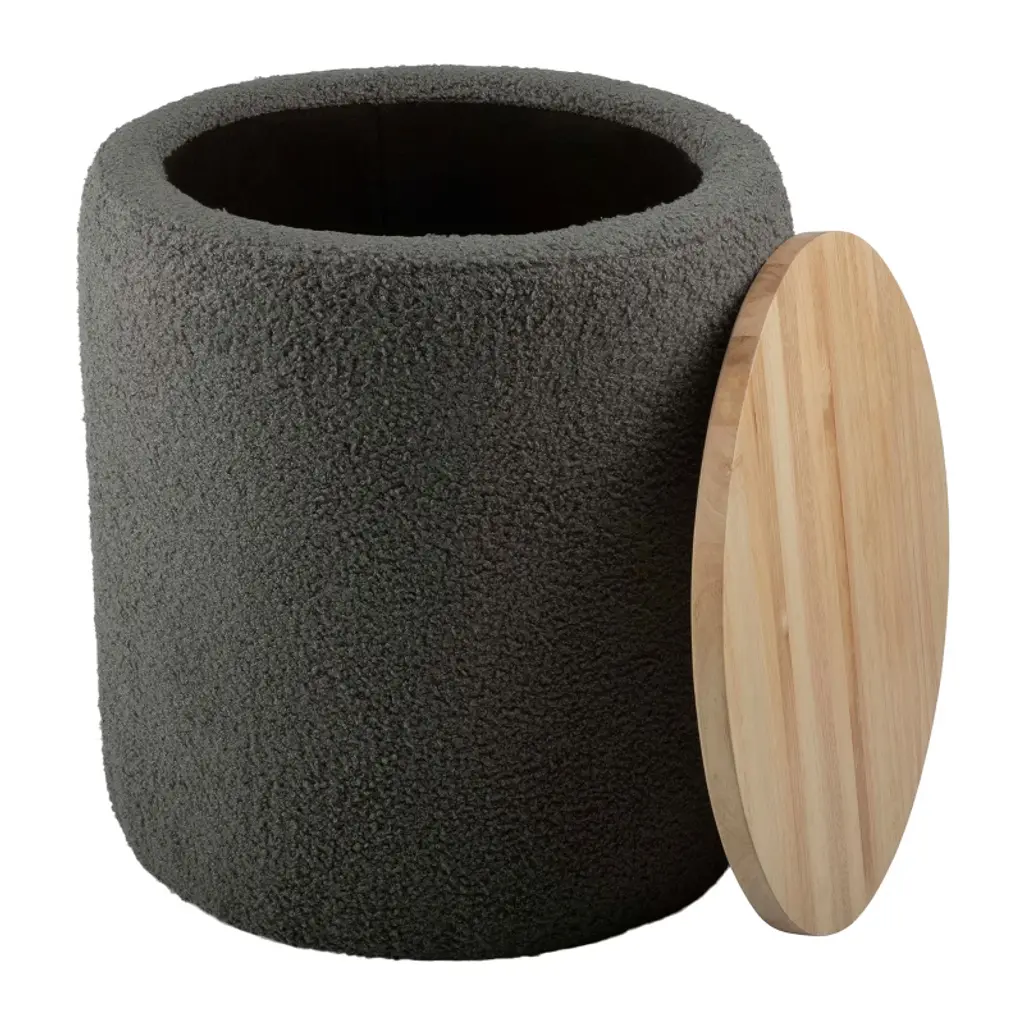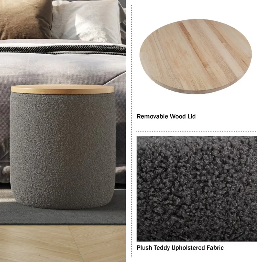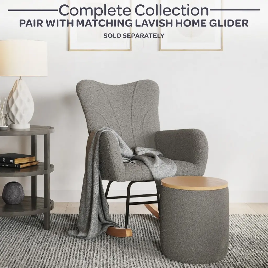 Bring the best of style and function to your home with the Round Ottoman with Storage by Lavish Home. This comfortable ottoman with storage for living room features a premium plush teddy upholstered fabric outer cover with a functional wood tray top lid that can be used to set drinks, snacks, phones, TV remotes, and other accessories. The modern, clean lines on the small ottoman bring a mid-century modern style to your home and can be paired with the matching Lavish Home Rocking Chair for a cohesive collection that’ll look great in your living room, bedroom, or office.