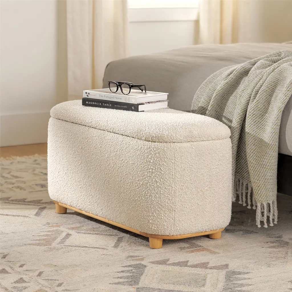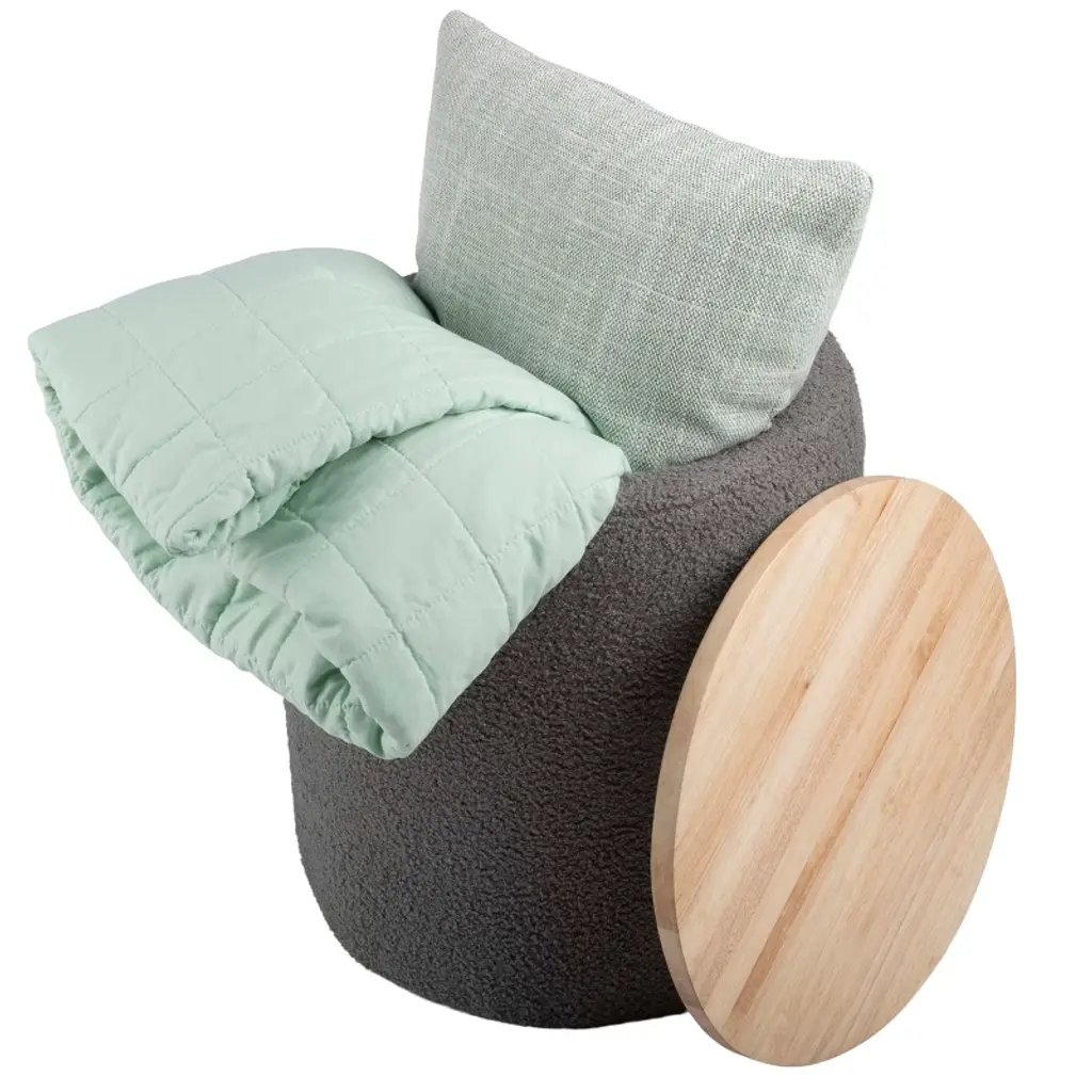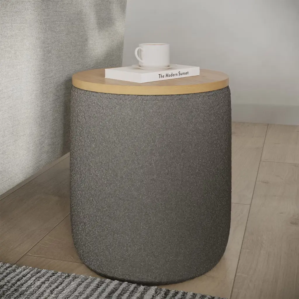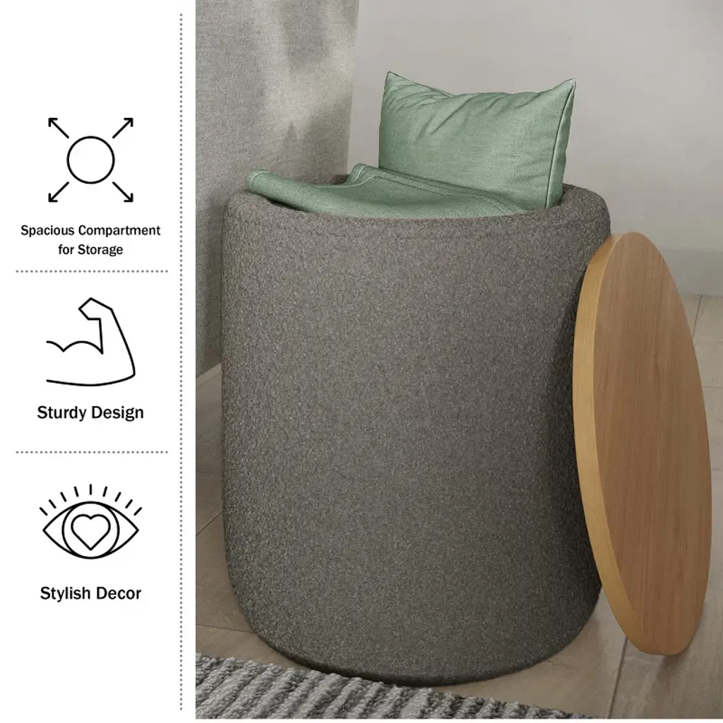 Bring the best of style and function to your home with the Round Ottoman with Storage by Lavish Home. This comfortable ottoman with storage for living room features a premium plush teddy upholstered fabric outer cover with a functional wood tray top lid that can be used to set drinks, snacks, phones, TV remotes, and other accessories. The modern, clean lines on the small ottoman bring a mid-century modern style to your home and can be paired with the matching Lavish Home Rocking Chair for a cohesive collection that’ll look great in your living room, bedroom, or office.