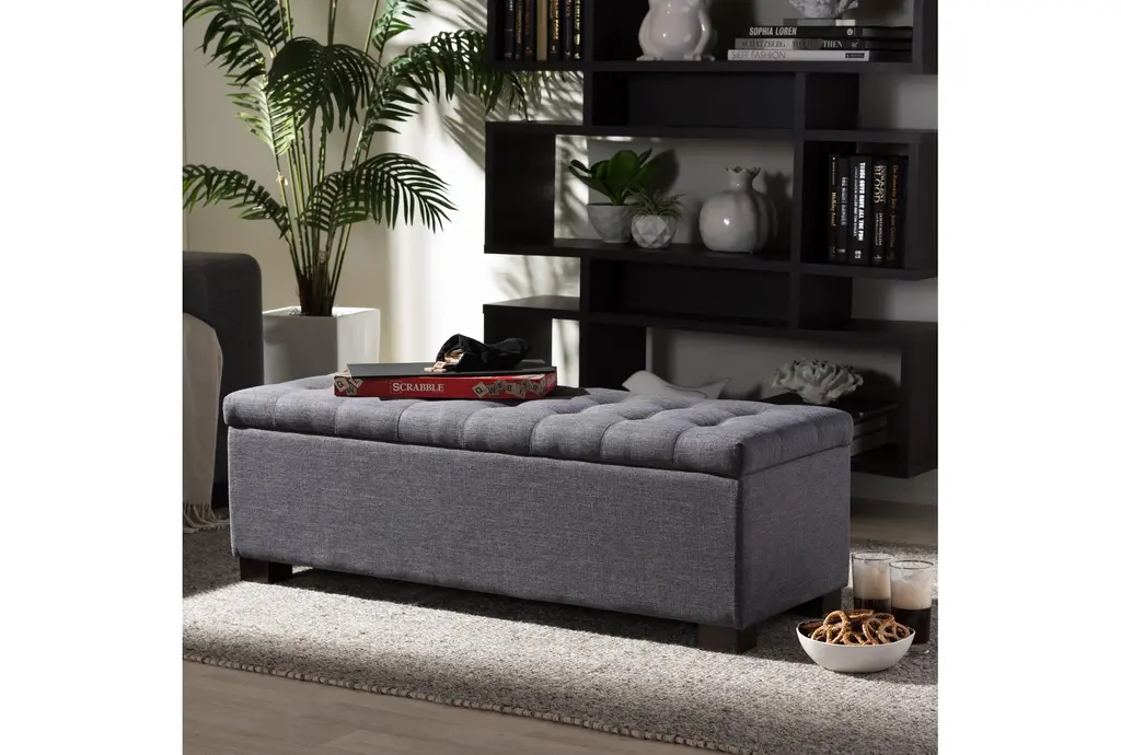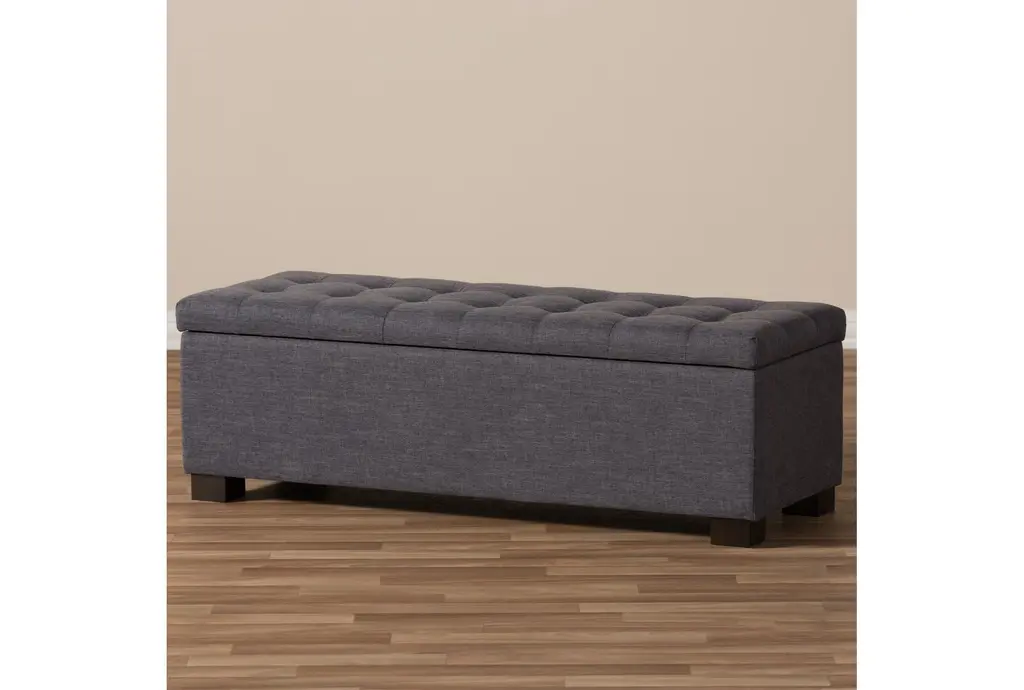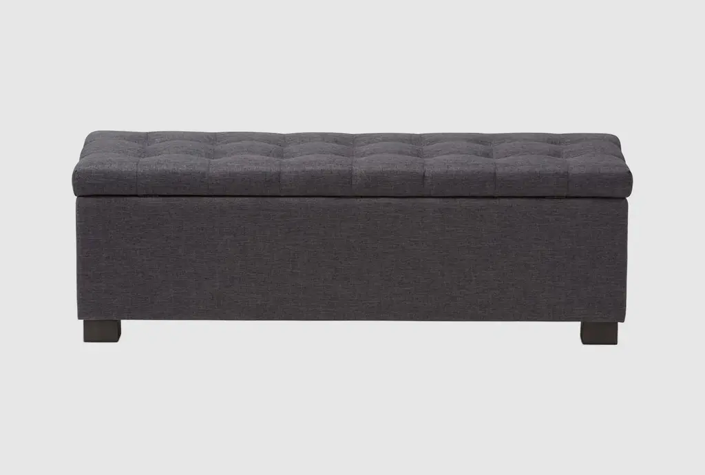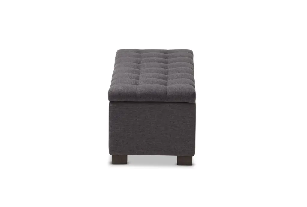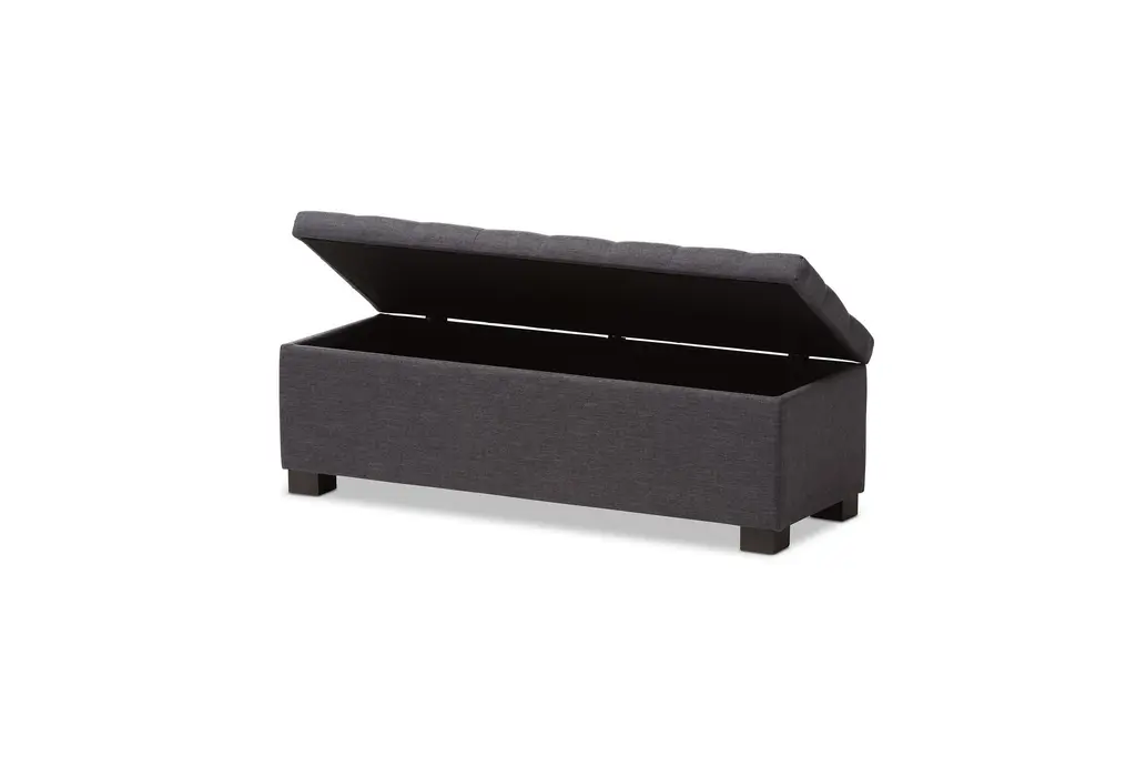 Maeve Dark Grey Fabric Upholstered Grid-Tufting Storage Ottoman Bench | Entryway | Shoe Bench