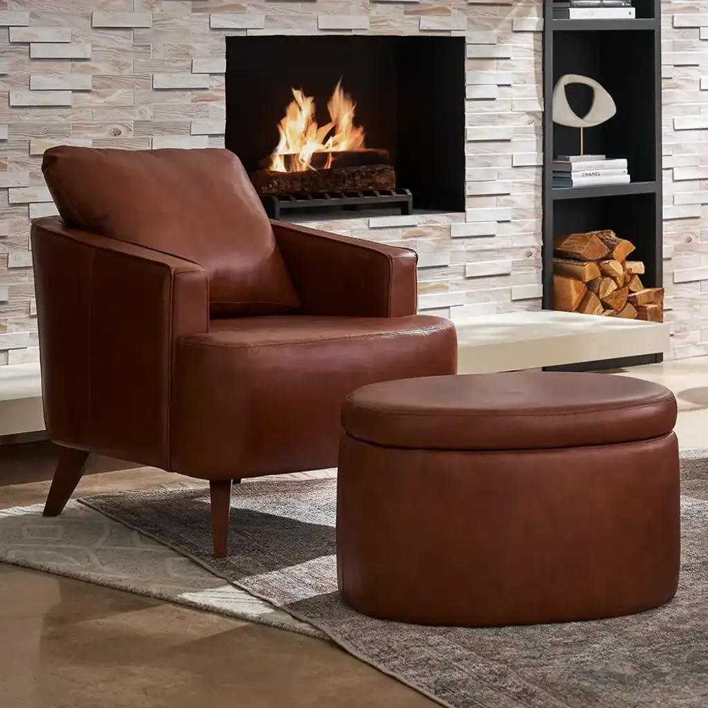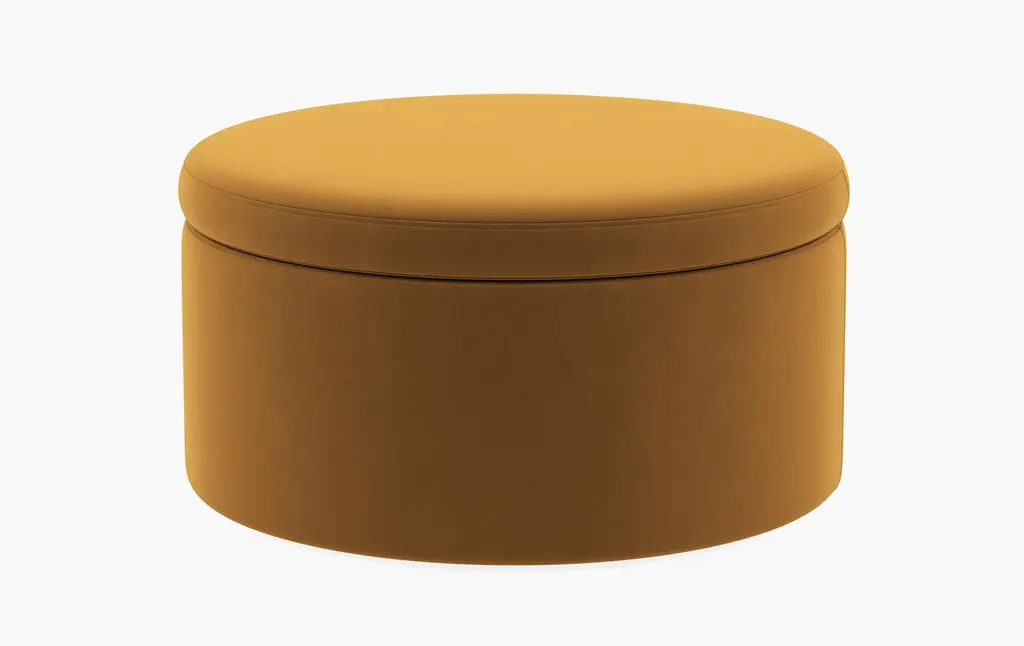 The Maeve Ottoman reflects the sleek barrel design of the Maeve Chair, but its clean organic form goes with anything. Hidden casters make it easy to move. Then, put your feet up, set a drink down or grab a throw from its storage nook and have a seat!
