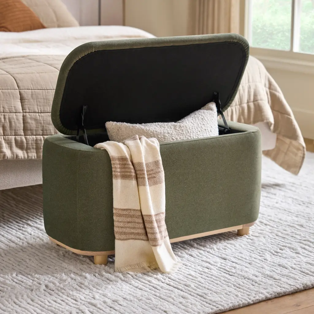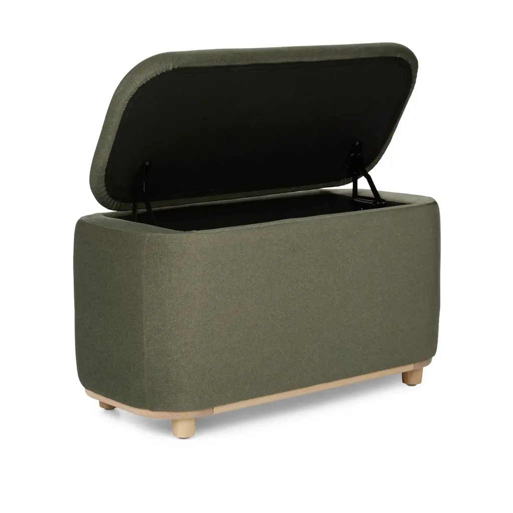 Holds your feet and your stuff. The Maribo Ottoman, with its soft-close lid and ample storage space, is a stylish double-threat.