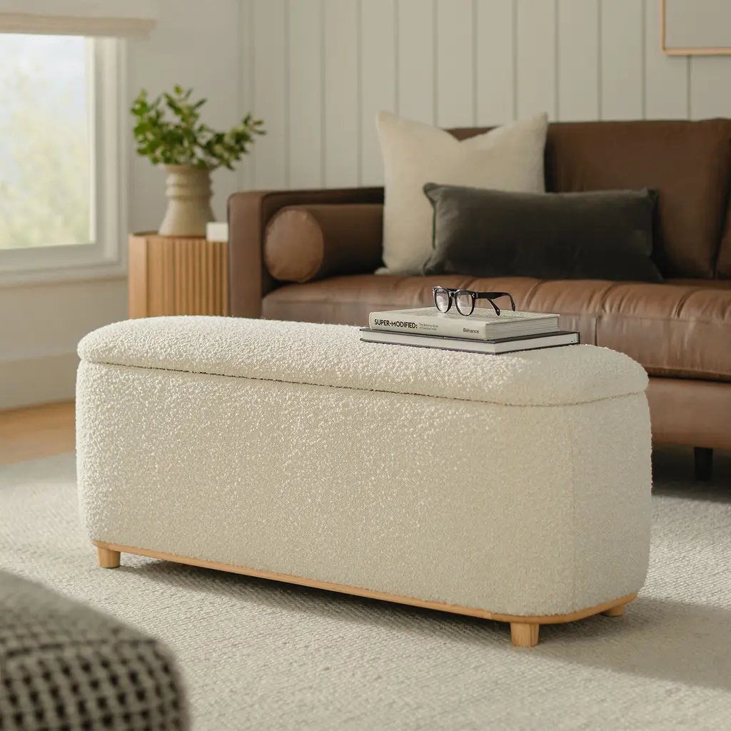 Maribo 48" Storage Ottoman - Ivory Bouclé