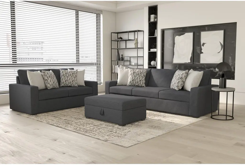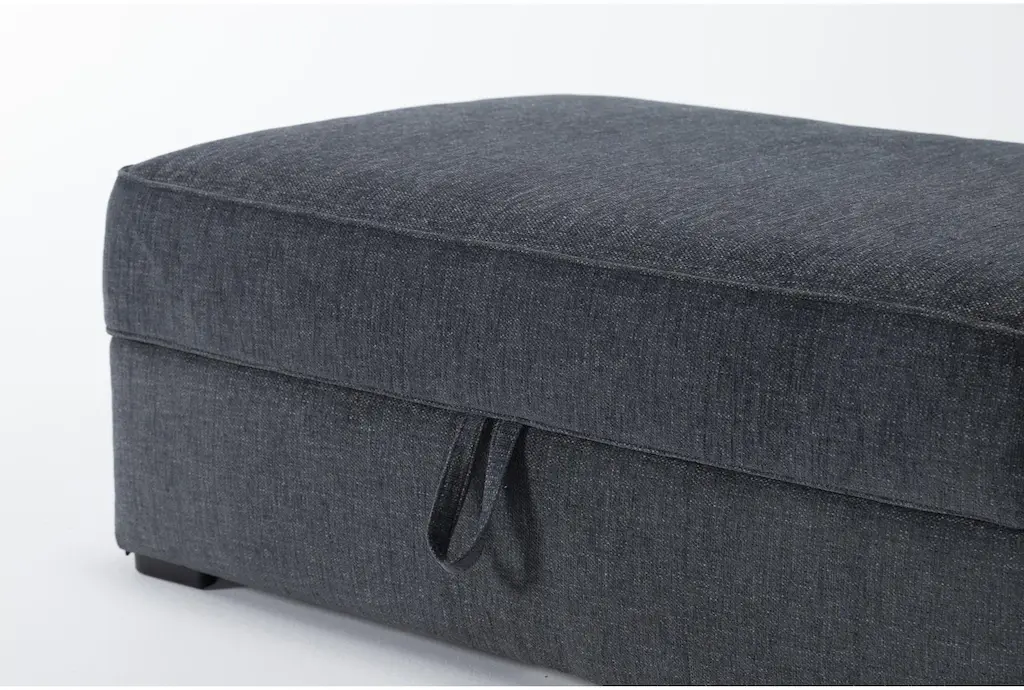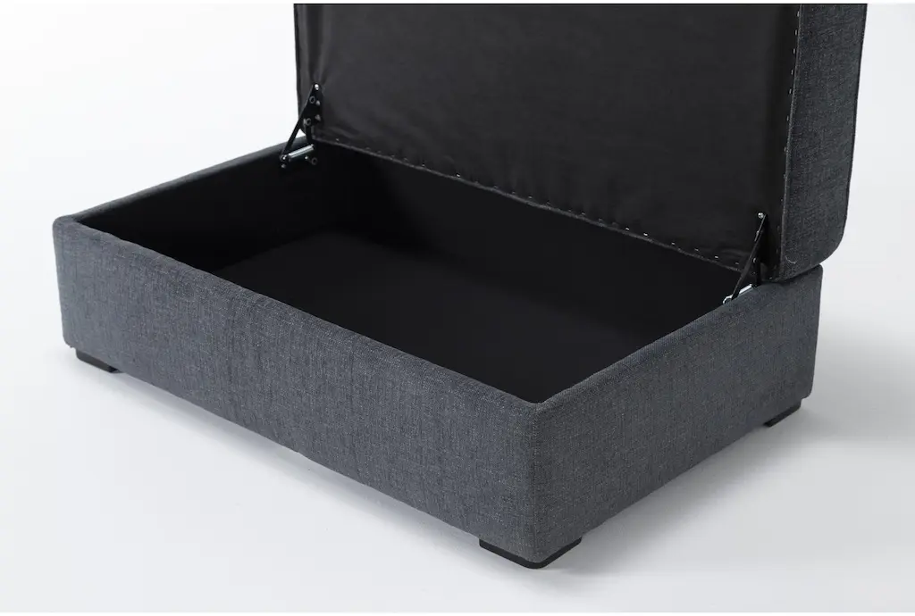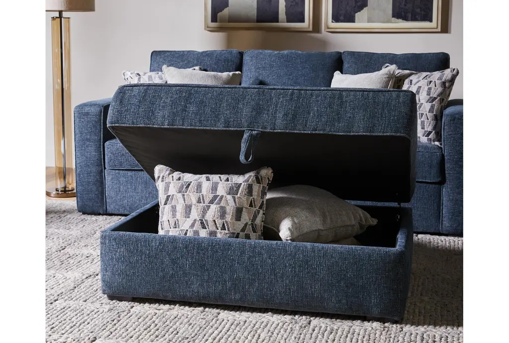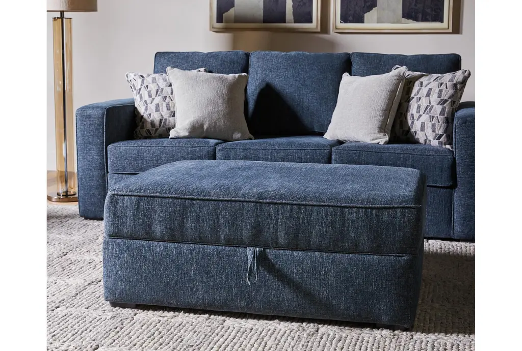 The Monterey Twilight Blue Fabric Storage Ottoman is a versatile addition to any home, providing both functionality and comfort. Its contemporary design makes it suitable for various rooms, including bedrooms and living rooms. The ottoman is upholstered in 100% polyester fabric, ensuring durability and ease of maintenance.