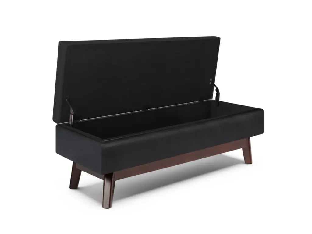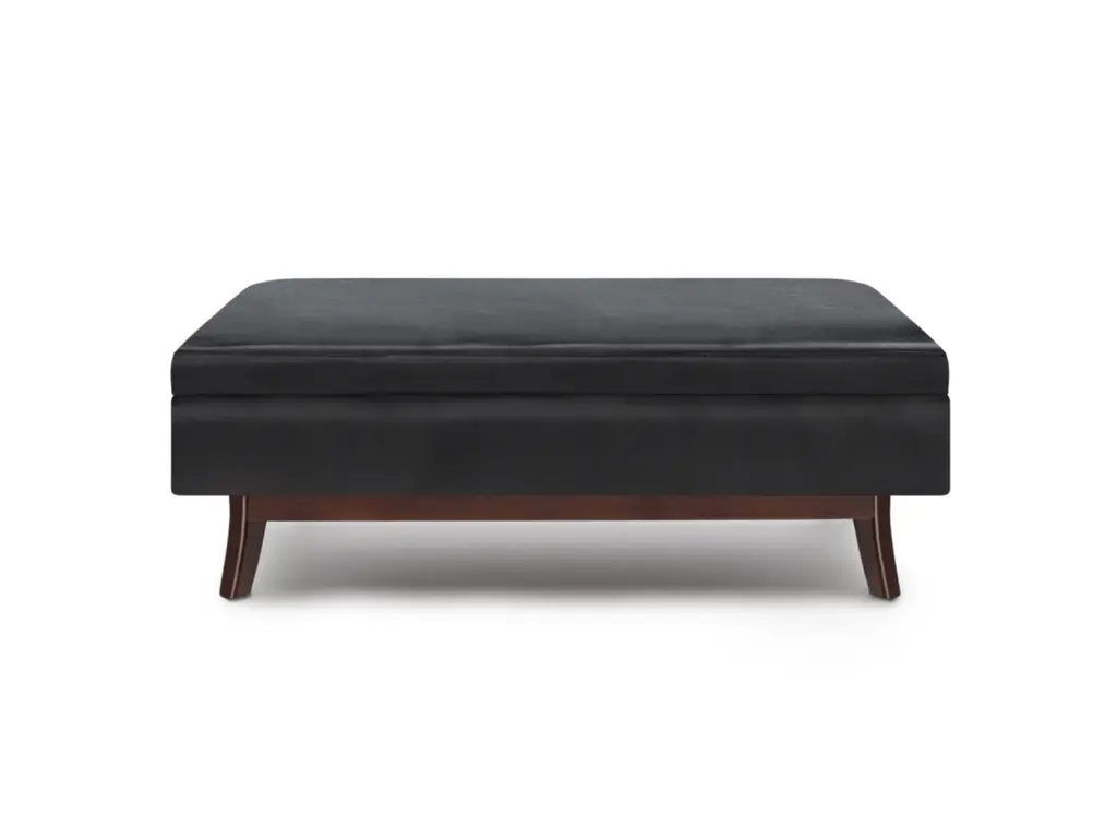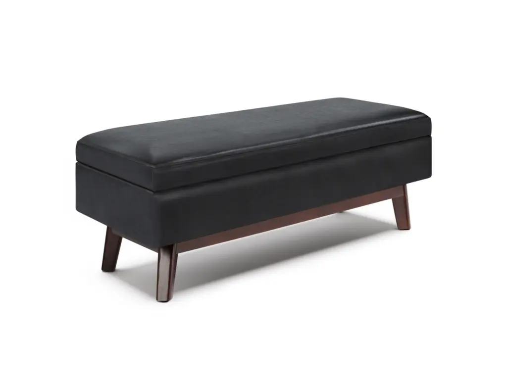 Update your space with the Owen Mid Century Storage Ottoman. Its modern style will add a fresh on trend look to your home. It features a lift up lid and a large interior storage space. Made with solid wood and premium fabrics for stylish durability and comfort. Whether used in the living room, family room or den, it will be the showpiece that completes the room.; Efforts are made to reproduce accurate colors, variations in color may occur due to computer monitor and photography; At Simpli Home we believe in creating excellent, high quality products made from the finest materials at an affordable price. Every one of our products come with a 1-year warranty and easy returns if you are not satisfied