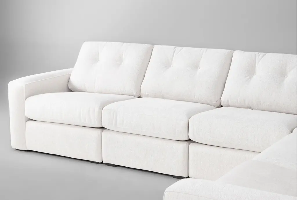Experience ultimate comfort and versatility with the Patricia Cotton 6 Piece Modular Sectional and Storage Ottoman. Designed to fit any living room, this modern sectional features a left arm facing and right arm facing chair, a corner piece, and three armless chairs, providing ample seating for your family and guests. The storage ottoman adds functionality, perfect for keeping your space tidy and organized.