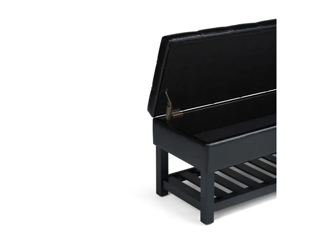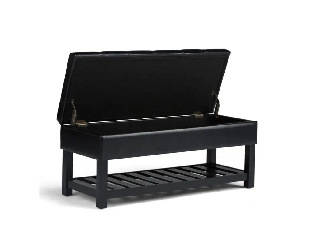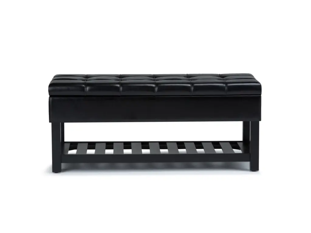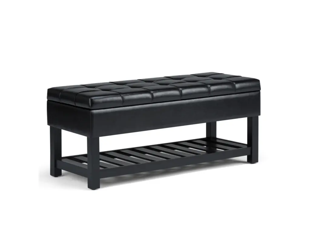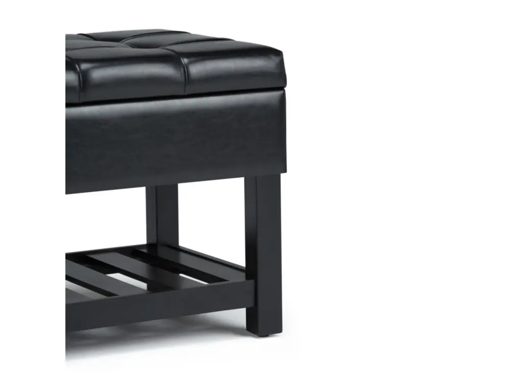 Why sacrifice function for beauty. When you are looking for a tasteful, well-made storage solution and extra seating, look no further than this storage ottoman. Made from durable faux leather, it’s extra strong and sturdy with a stitched and tufted exterior, a large storage interior and a bottom storage area. Whether you are using it in your entryway, living room or bedroom, this ottoman is a pretty and practical piece of furniture.