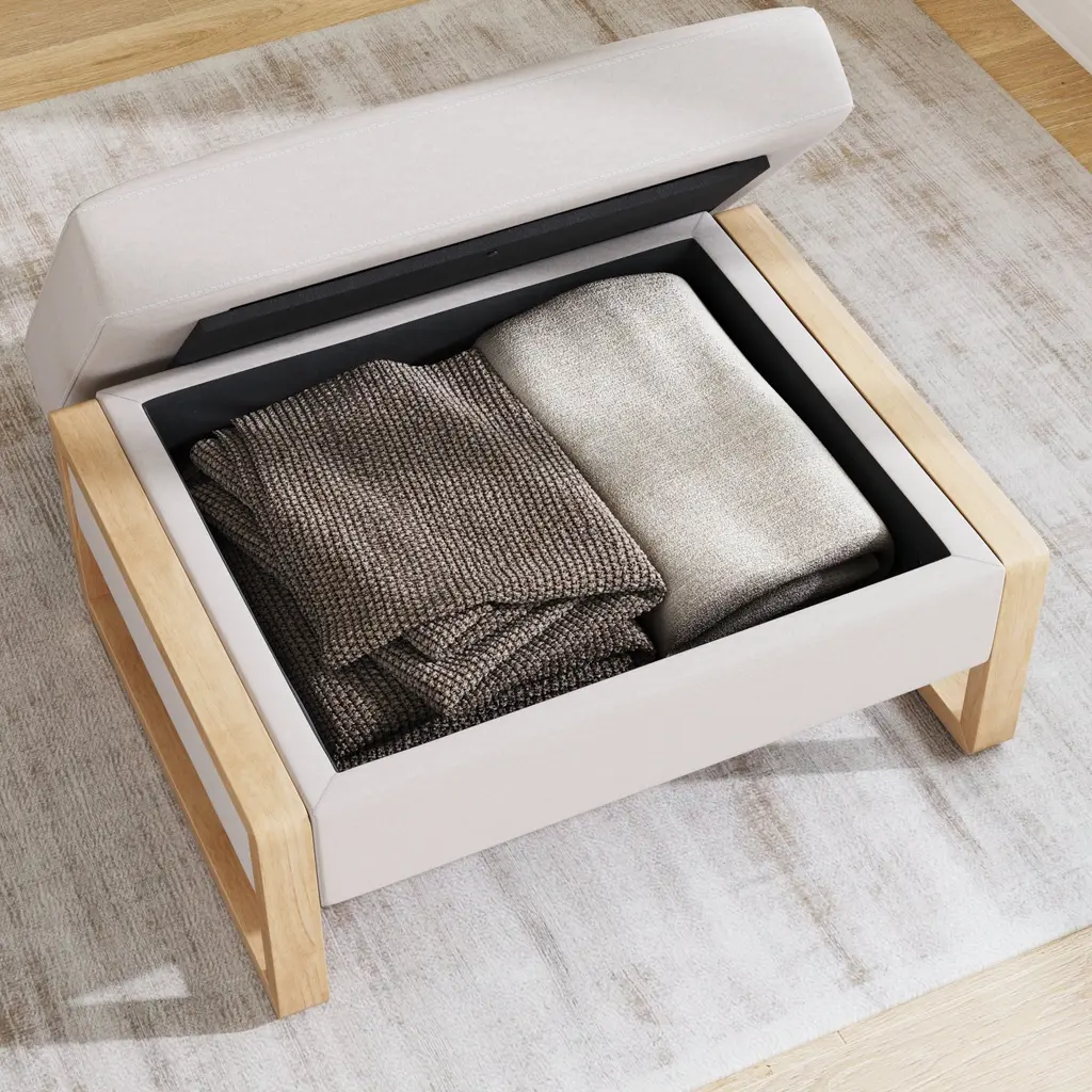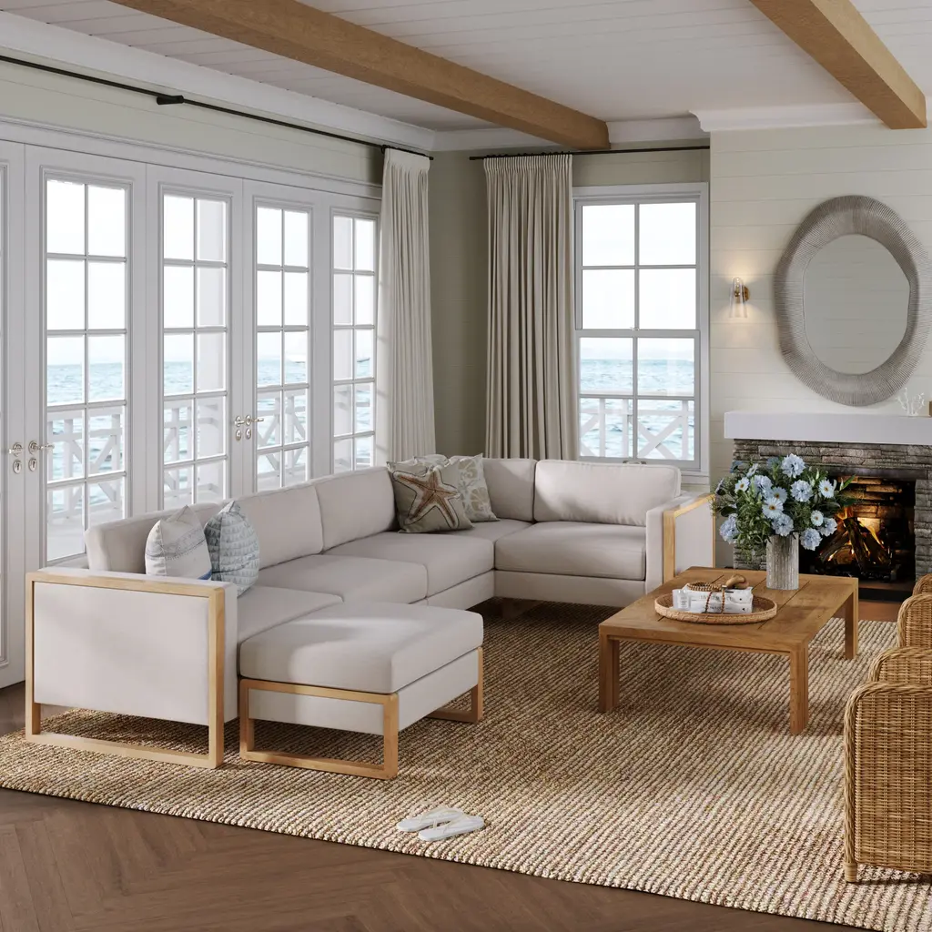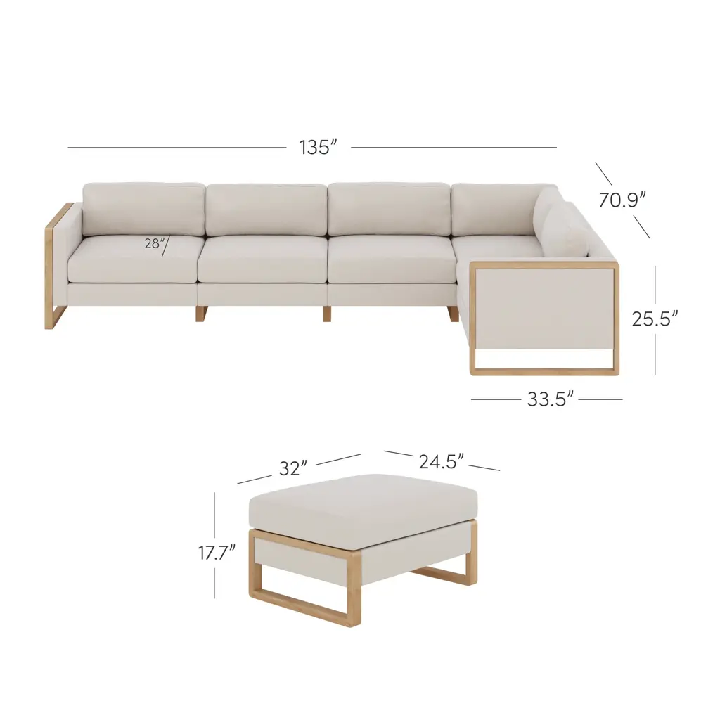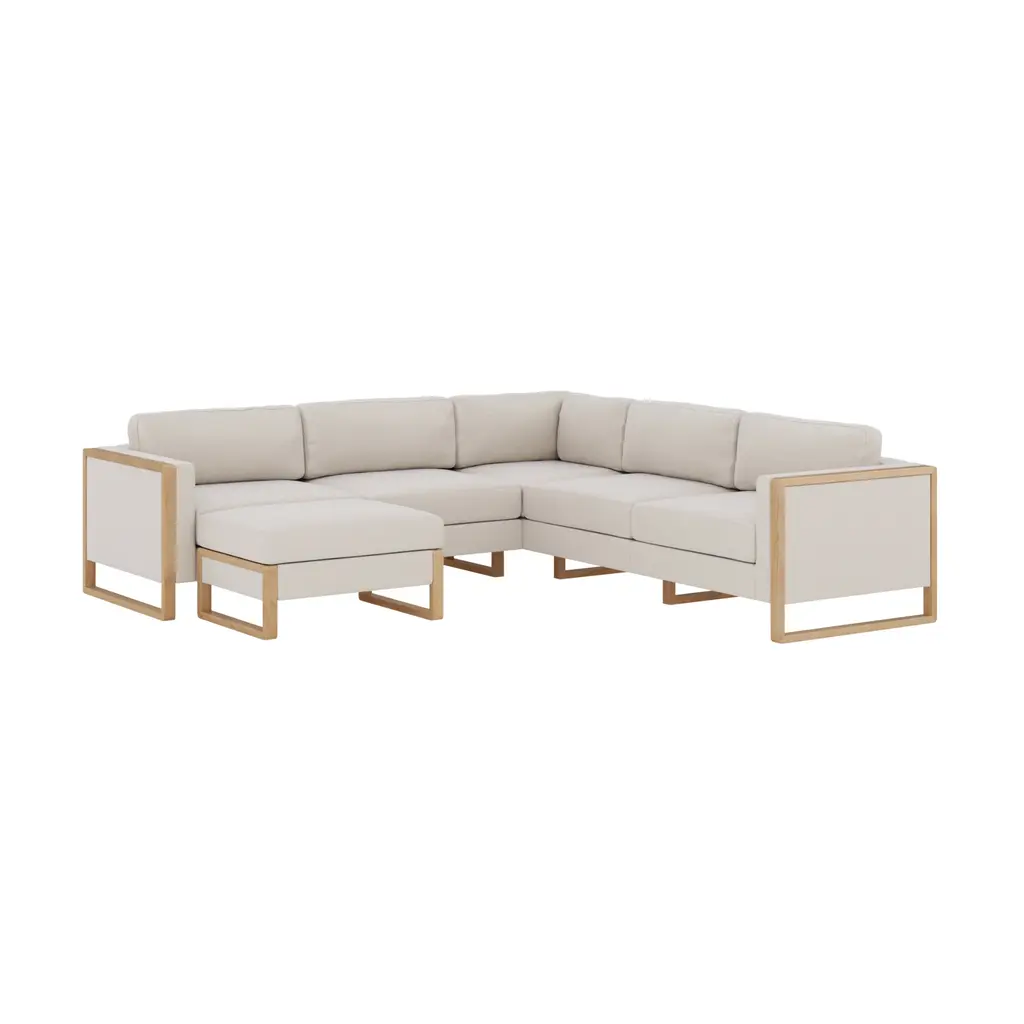 Soft Fabric 5-Seat Wood Frame Sectional Sofa Couch & Storage Ottoman Bisque