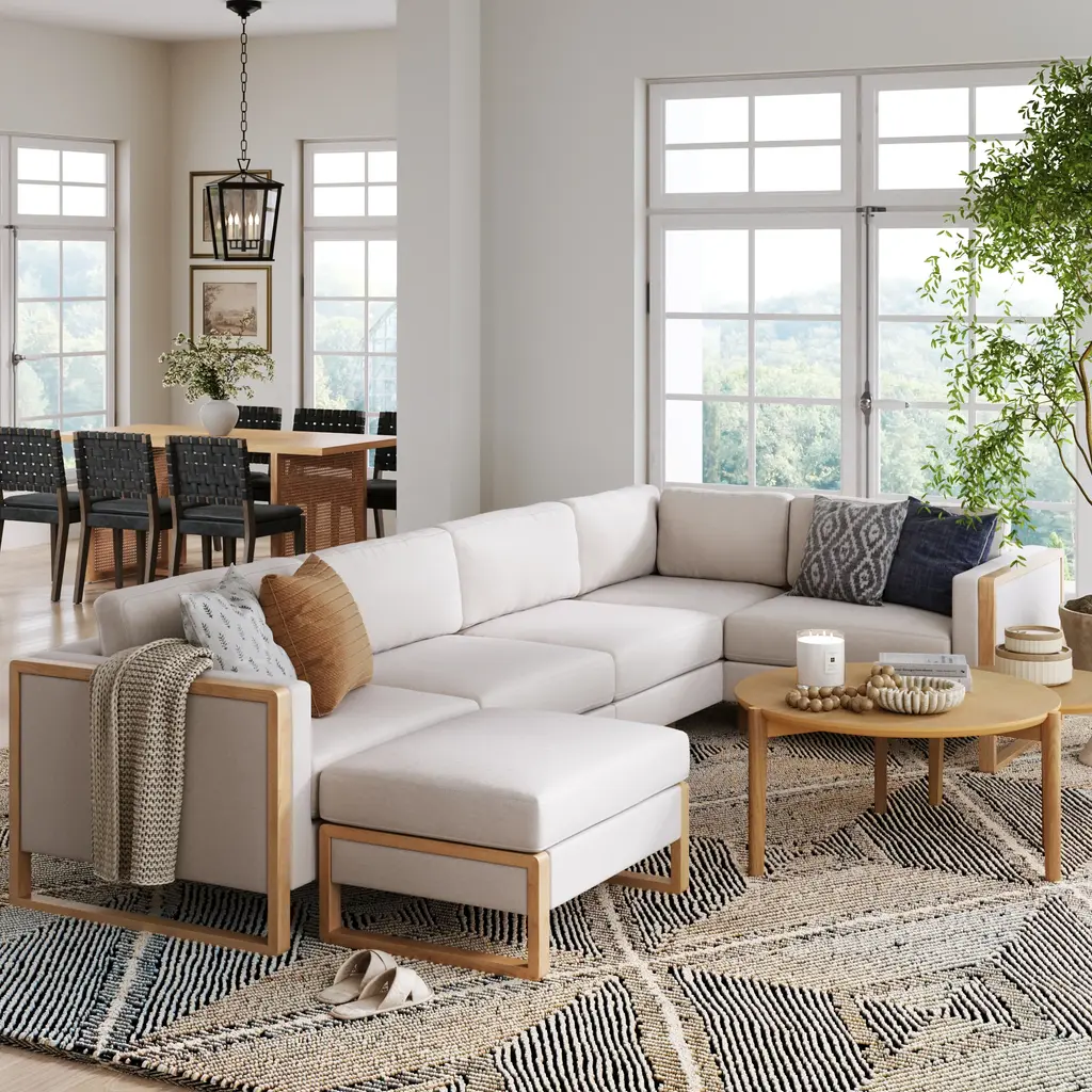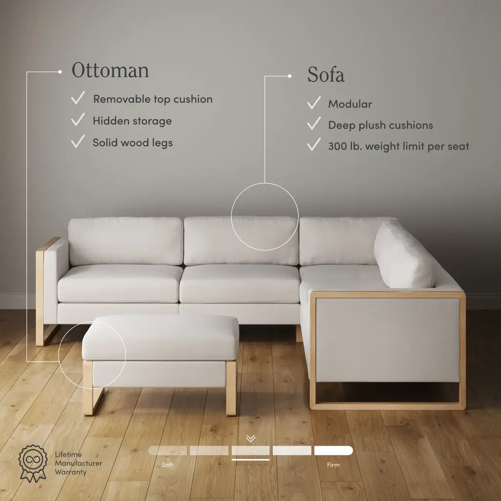 Elevate your living space with the Madison modular sofa collection. With multiple sofa sizes and configurations to choose from, you have the flexibility to customize your perfect arrangement, whether you prefer a cozy loveseat or a spacious sectional. The collection's soft, textured fabric finish and wood accents lend a touch of sophistication, while its 300 lb. weight capacity makes it a practical for movie nights for the whole family. Plus, its plush back cushions are designed for the ultimate Netflix experience. With supportive springs both in the cushions and frame, these sofas are practically saying, "We're here for the long haul!" So, go ahead and sink into the softness without a care in the world, because these sofas are all about long-lasting comfort and durability.
