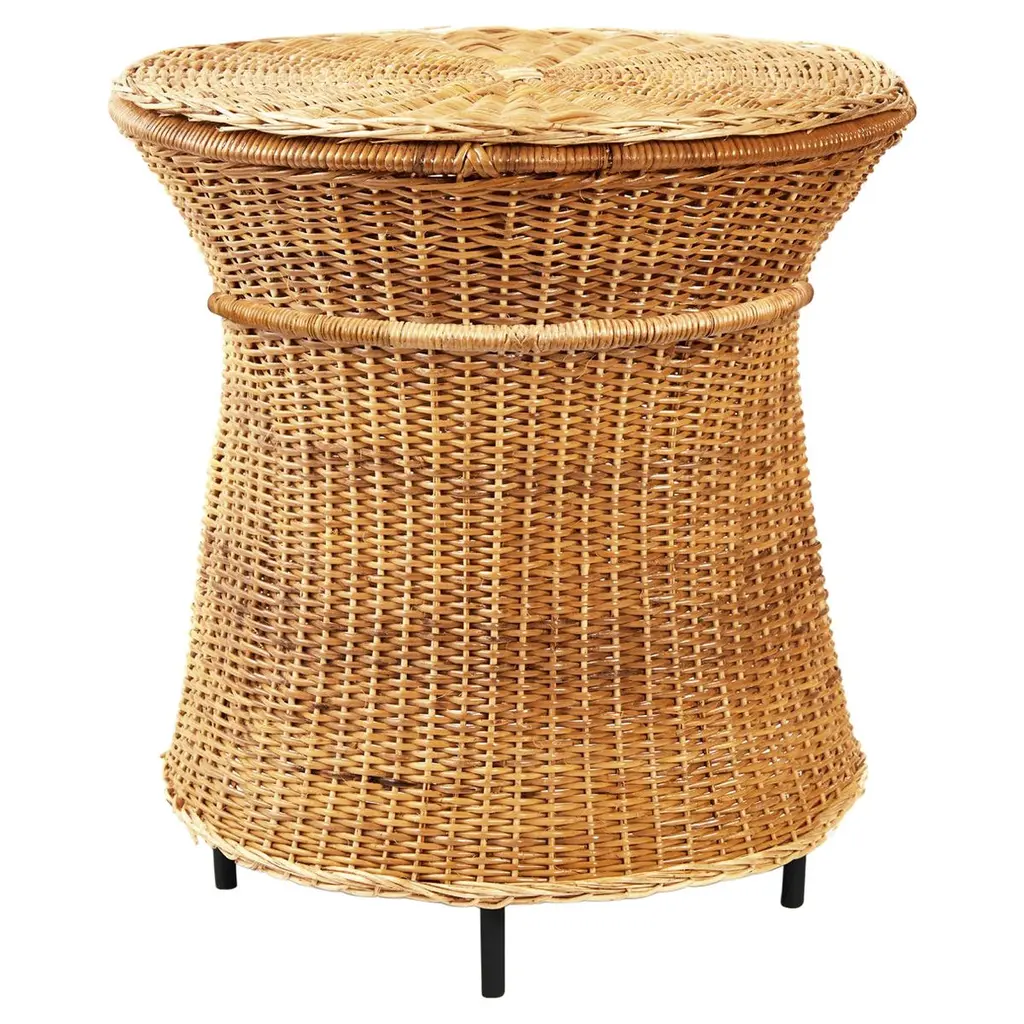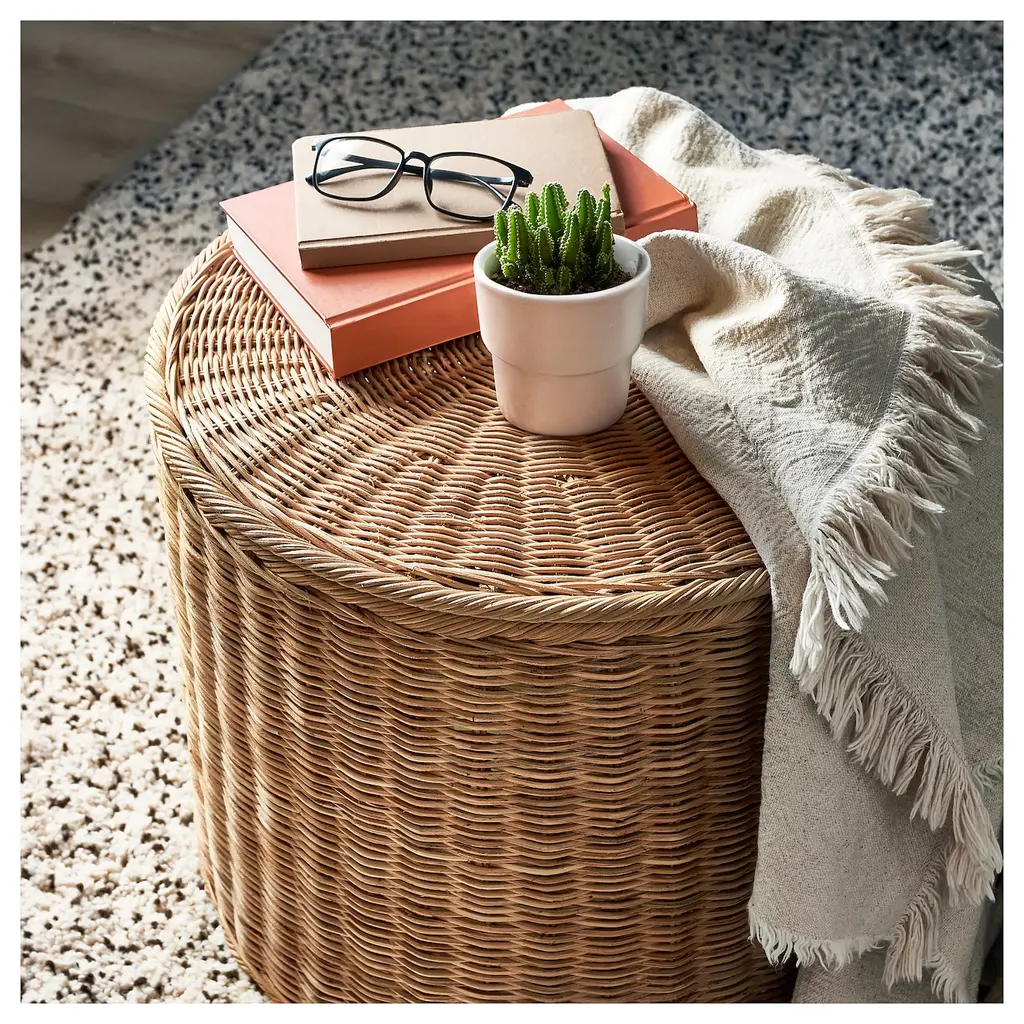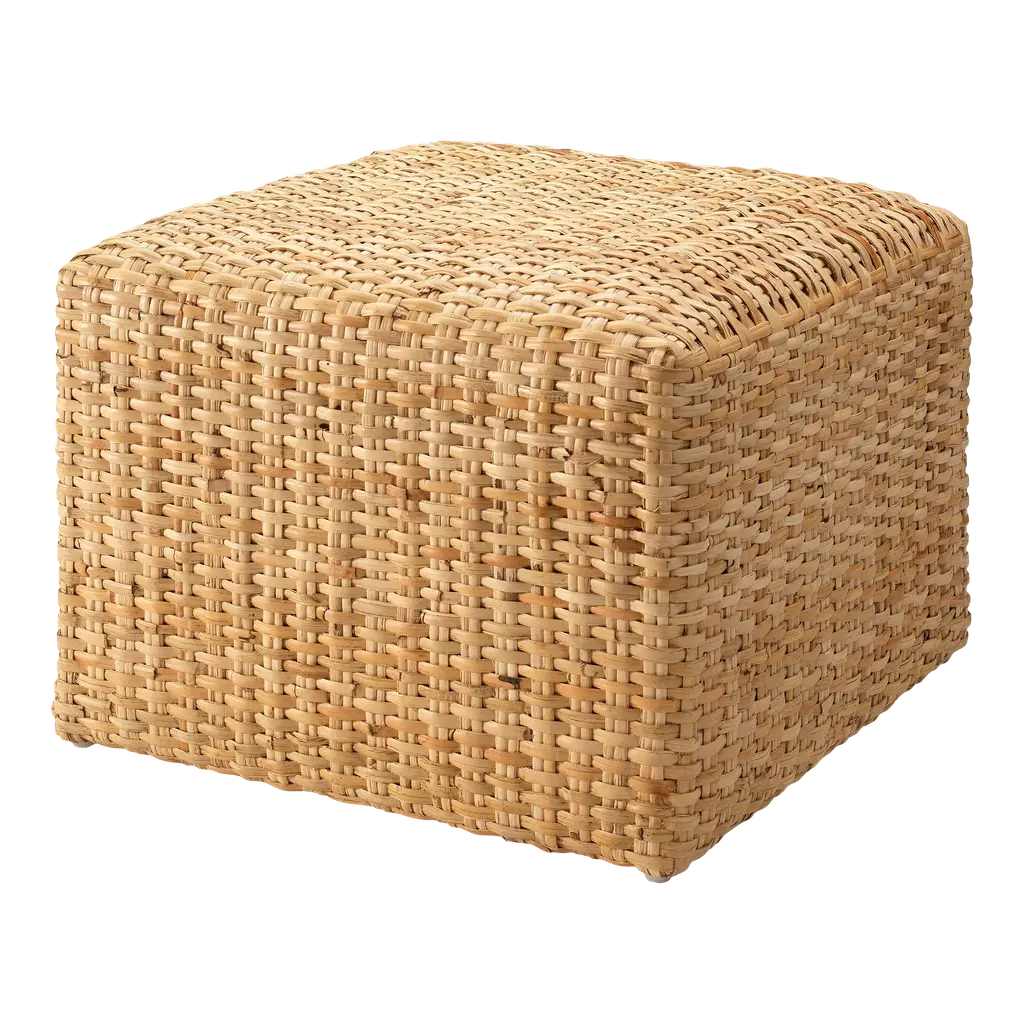 TOLKNING Ottoman with storage - handmade rattan. Skilled craftspeople have woven the product by hand, so each one is one of a kind. You can use the ottoman in many ways – as a footrest, extra seating, or as a table if you place a tray on top.