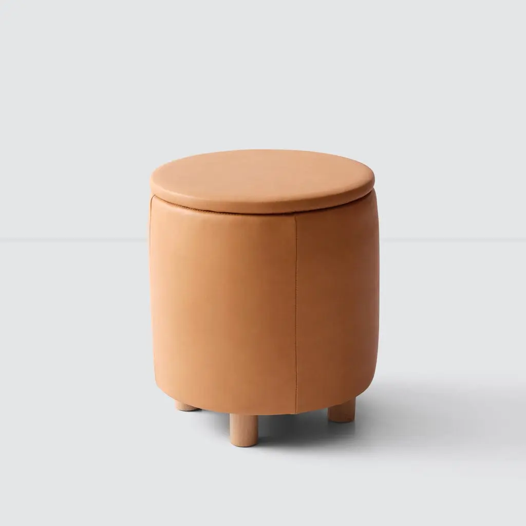 A best-of-both-worlds leather ottoman that combines style and storage, this piece makes the perfect addition to any living area or reading nook. Thanks to its detachable lid and roomy storage interior, this little guy can stash some serious clutter - don’t be fooled by its compact, easy-to-style size.Handcrafted with vegetable-tanned cow leather ethically sourced from Alcanena, Portugal, a small town known as “The Land of Leather.” All made start-to-finish in a fair trade environment.NOTE: Due to the size of this item, returns for a refund require a $65 total fee. Returns for store credit are always free.