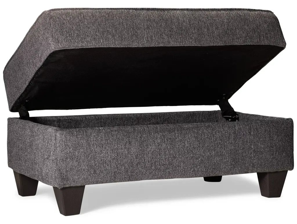 Add stylish function to your living space with the Tripoli Storage Ottoman from Fusion Furniture. Perfect for resting your feet or holding a snack tray, this ottoman also has a hinged top that opens to reveal roomy storage for keeping your living room essentials handy. Tapered square legs complete the look.