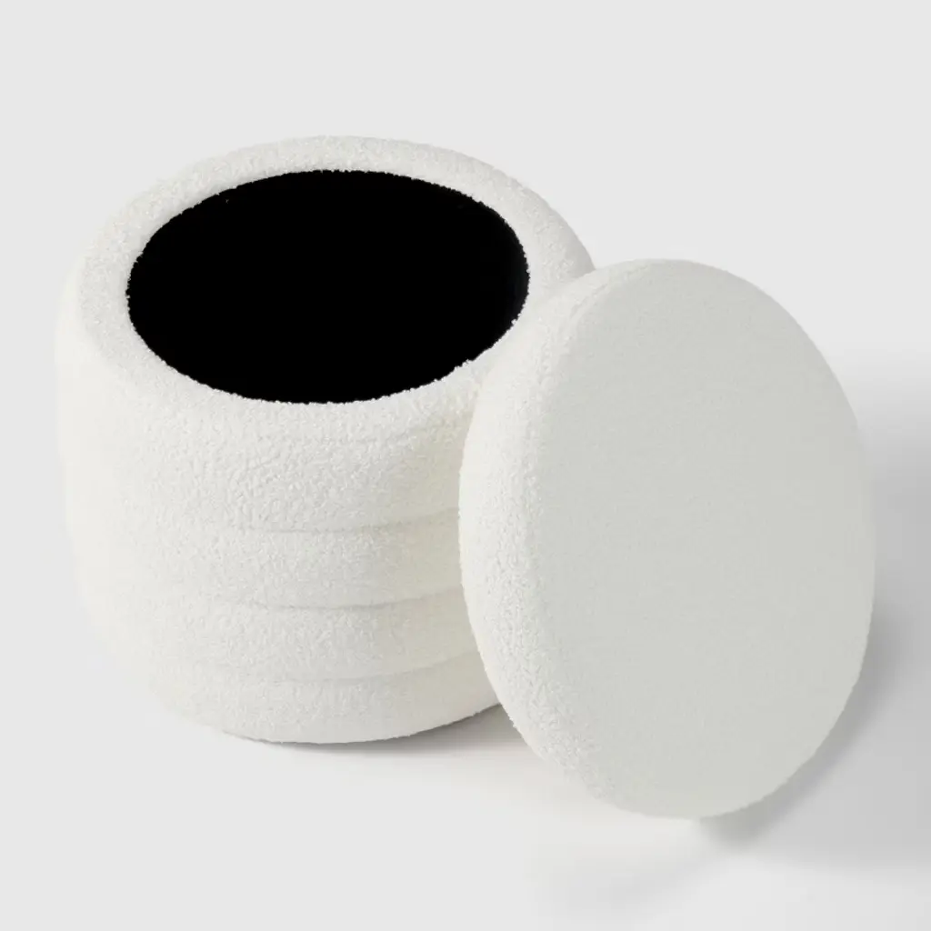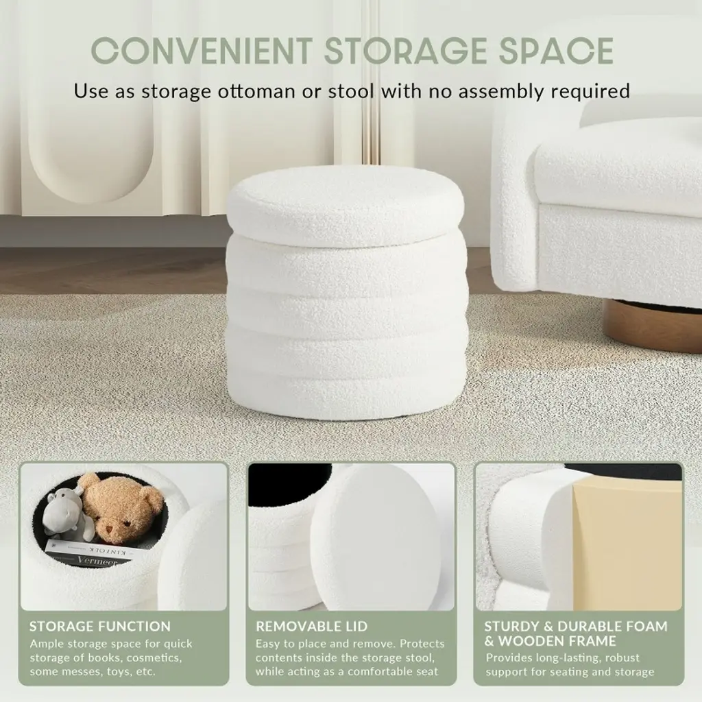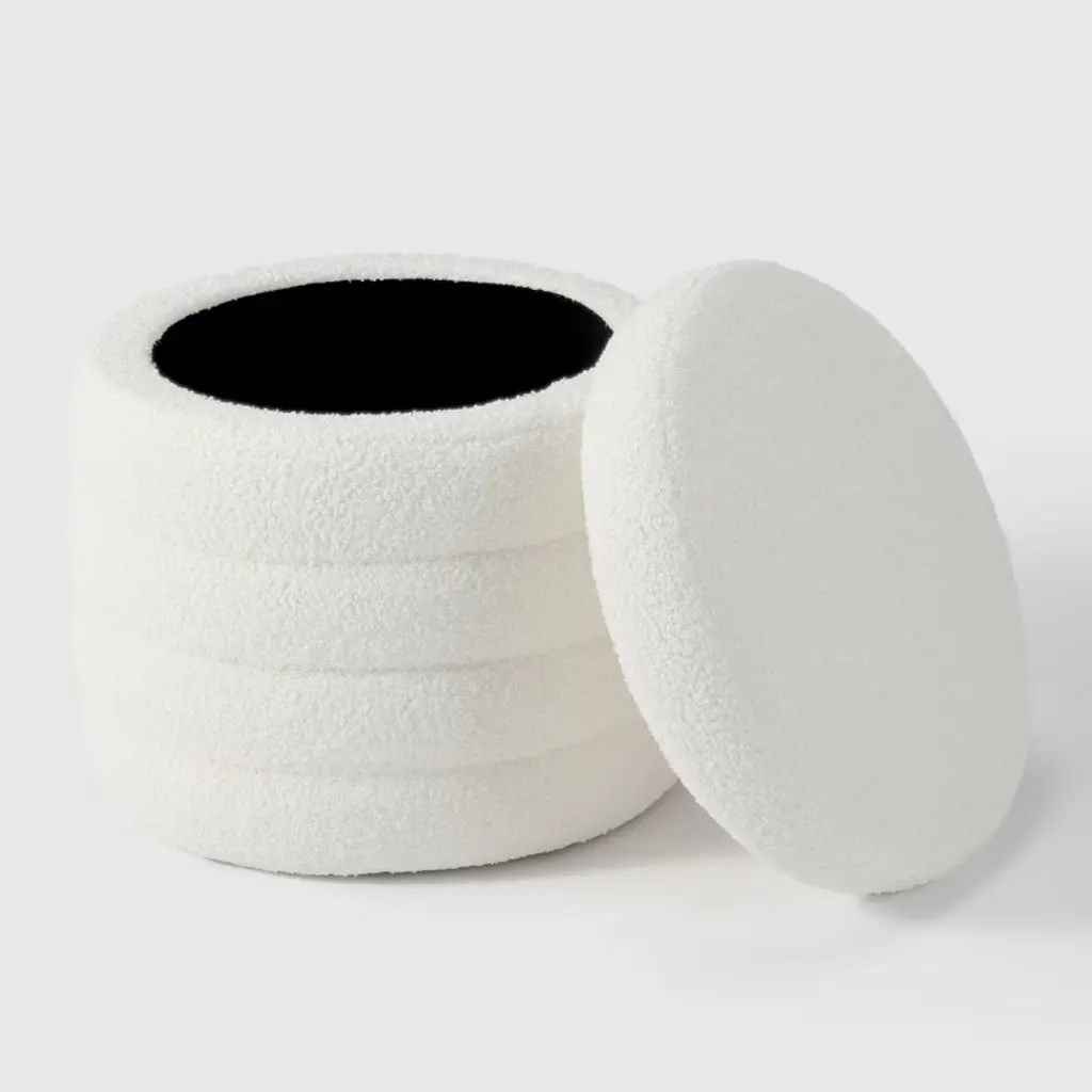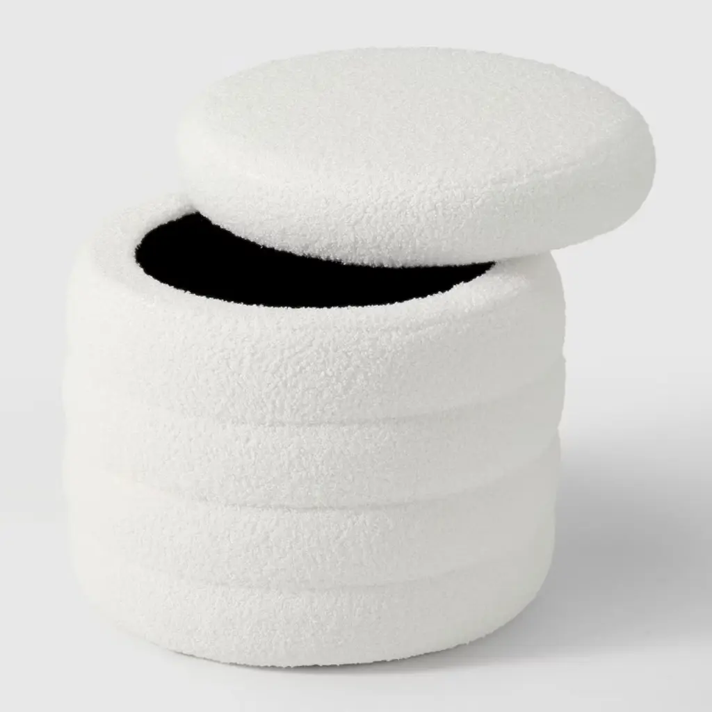 Elevate your living space with this versatile round Shearling ottoman, featuring ample storage for toys, small blankets, or other essentials. Its compact size makes it ideal for smaller spaces, while the plush, foam-filled lid provides comfortable seating or a convenient footrest. Enjoy the perfect blend of style and functionality with this luxurious small-circle ottoman with storage.FeaturesUpholstered All Around with a Soft Shearling FabricRemovable Lid Top with an Inner Storage Space Dimensions of 12" D x 12" W x 11.5" HConstructed with Solid Plywood for added durabilityMutlifunctional Design Allows you to Use as an Extra Seat and Storage SpaceLightweight and Simple to Move aroundDurable Frame That Can Support Up To 300lbsProtective Foot Pads to Prevent Damage to Your FloorsDetails: Product Type: Ottomans & PoufsDimensions: 17.25" W x 17.25" D x 16" HWeight: 10.5 Lbs.Storage Space Height: 11.5"Weight Capacity: 300 Lbs.