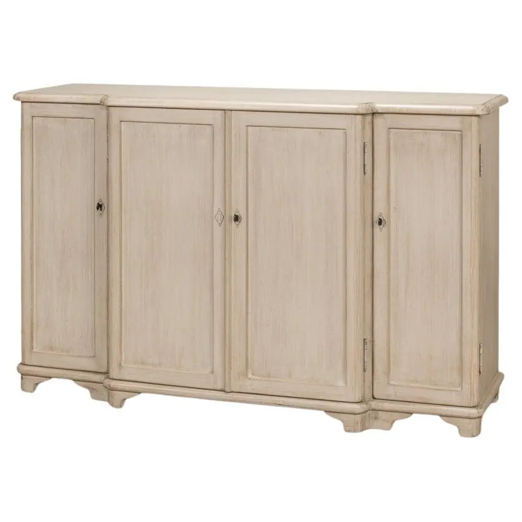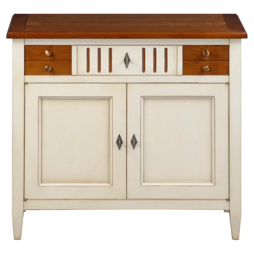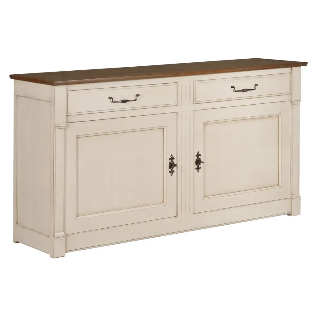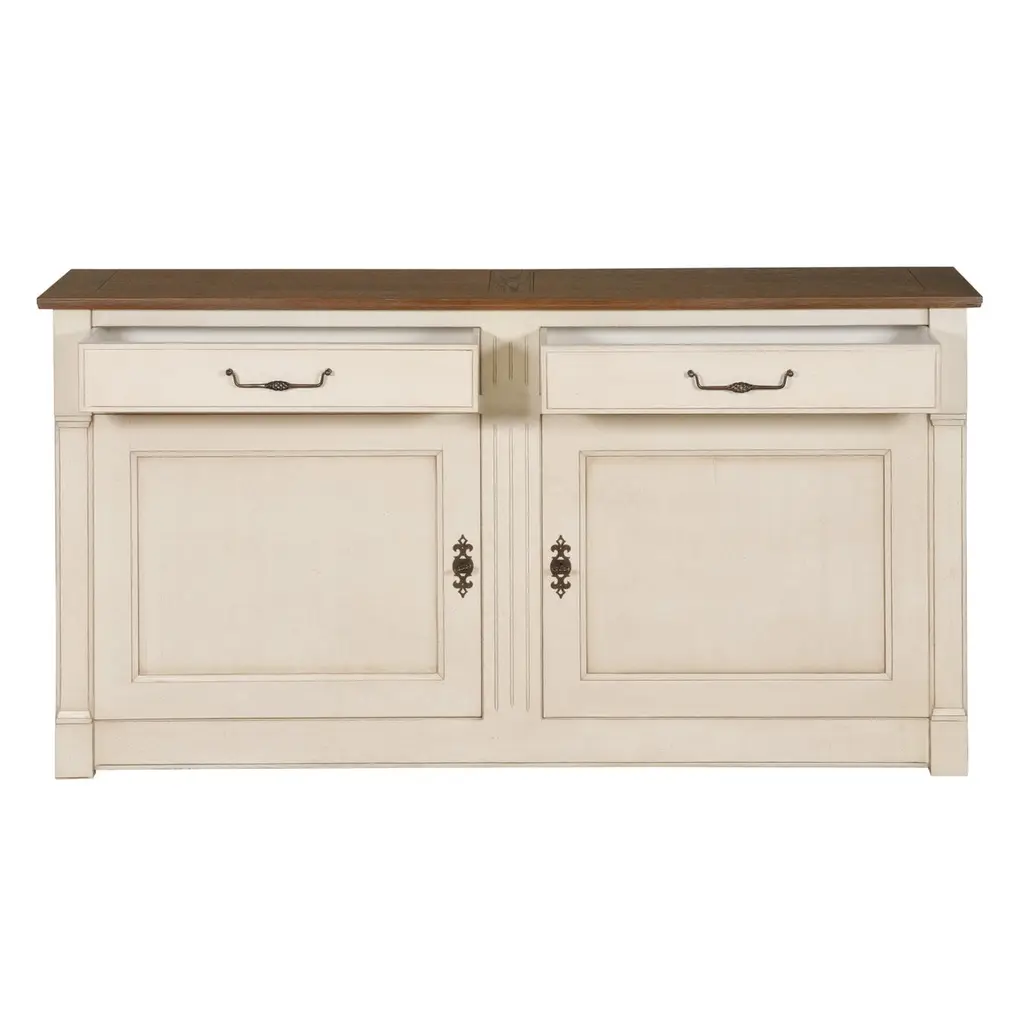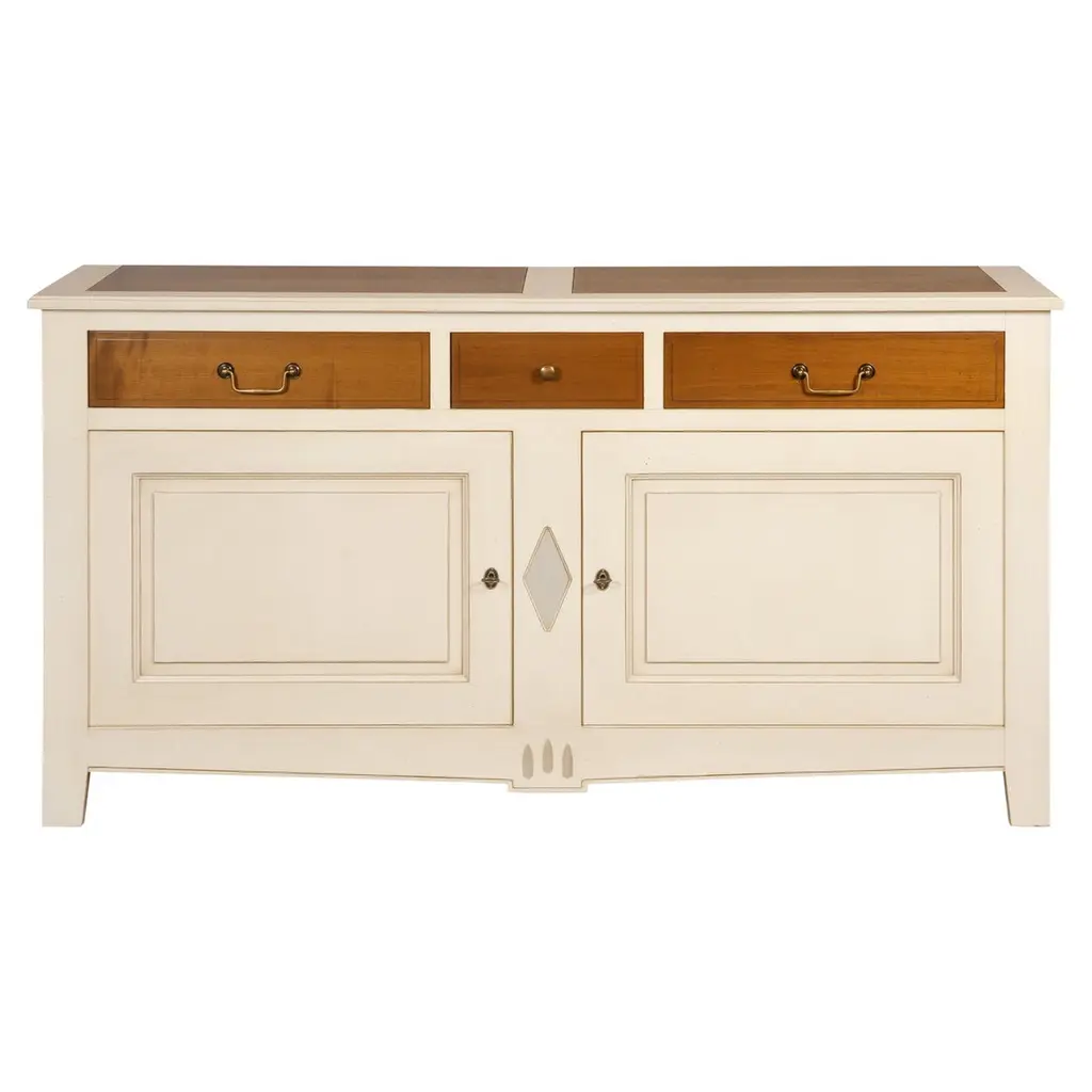 2 Doors White-Cream Sideboard In Solid Oak, 100% Made In France