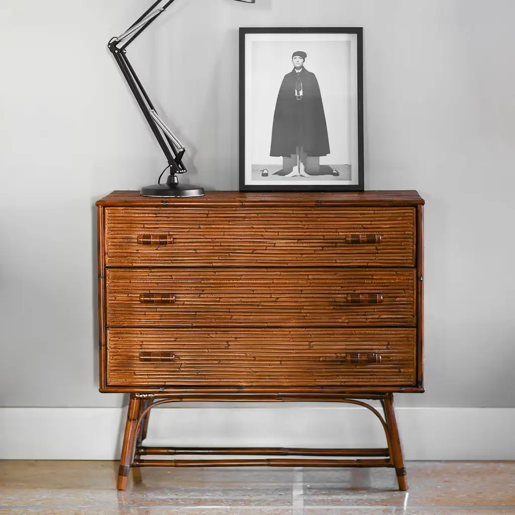 3-Drawer Four-Legged Bamboo Chest Of Drawers