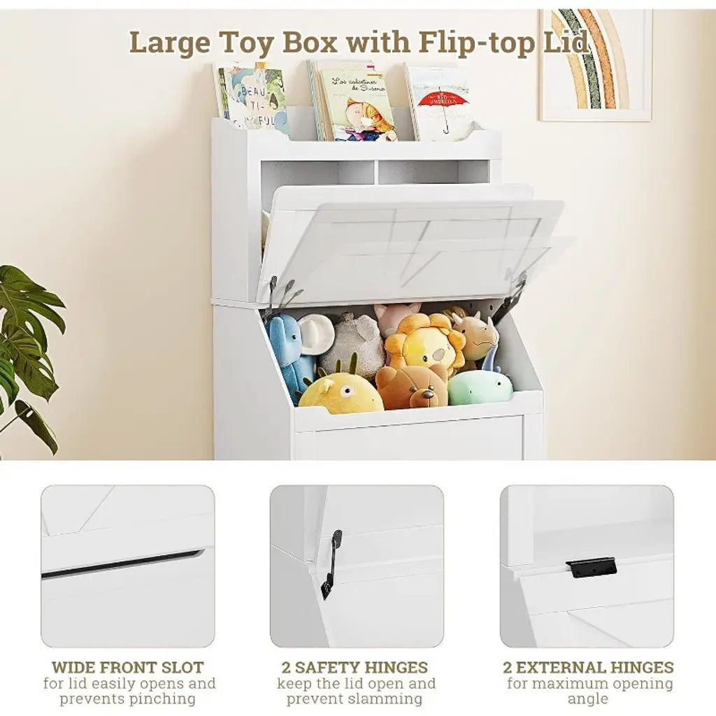 Product Description:Keep your child’s space tidy and safe with the 3-Tier Wooden Kids Bookcase & Toy Storage Organizer, a versatile and durable solution designed for playrooms, bedrooms, nurseries, or classrooms. Featuring a flip-top lid, three open compartments, and a child-friendly design, this storage unit combines practicality with modern aesthetics to encourage organization and imaginative play.Key Features: Child-Safe ConstructionEquipped with an anti-tipping mechanism and a fully enclosed back panel, this bookcase ensures stability and security. Rounded edges and a sturdy build provide a safe environment for children to explore independently. Ample Storage & OrganizationThree spacious open shelves offer easy access to books, toys, and crafts, promoting tidiness. The flip-top lid conceals a large toy chest for bulkier items like stuffed animals or board games, keeping clutter out of sight. Durable & Kid-Proof MaterialsMade from high-quality engineered wood with a scratch-resistant and water-resistant finish, this organizer withstands daily wear. Its robust design ensures longevity, even in high-traffic play areas. Thoughtful Design for IndependenceWide compartments and a lightweight flip-top lid allow children to retrieve and store toys independently, fostering responsibility. The minimalist style complements nursery, Montessori, or modern decor. Space-Saving VersatilityCompact yet functional, this unit adapts to bedrooms, kindergartens, or living rooms. Use it as a bookshelf, toy display, or hidden storage chest to maximize space in any setting. Product Specifications:Material: Engineered wood with kid-safe finishDimensions: Includes three open tiers + flip-top chestFeatures: Anti-tip kit, enclosed back panel, scratch/water-resistant surfaceStyle: Modern, minimalistUse: Playroom, nursery, bedroom, classroomIdeal for families prioritizing safety and organization, this 3-tier organizer blends functionality with timeless design, helping children learn tidy habits while keeping their favorite items within reach.