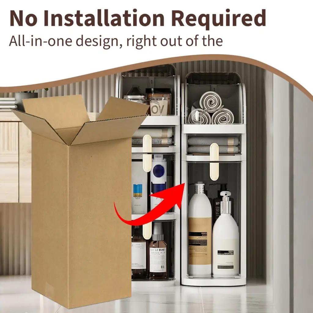 TROPOW 3-Tier Slim Bathroom Storage Cabinet with Wheels ¨C Durable, Waterproof, and Space-Saving Organizer for Small SpacesKey Features:Stylish and Functional Storage:This elegant 3-tier slim cabinet offers a minimalist design ideal for bathrooms, kitchens, bedrooms, and other small spaces. Multiple drawers of different sizes provide ample storage and clear compartments for easy visibility and quick access to essentials.Durable and Waterproof Build:Constructed from premium ABS material, this narrow cabinet withstands heavy daily use without tilting or deforming. Its waterproof design safeguards stored items from moisture, making it perfect for humid areas like bathrooms and laundry rooms.Sturdy and Safe Construction:Reinforced with ABS and PP materials, the cabinet ensures reliable stability and supports heavy loads. Rounded edges enhance safety by reducing injury risks, making it suitable for homes with children and elderly family members.No Assembly Required & Space Efficient:Ready to use right out of the box, this freestanding cabinet eliminates the hassle of setup. Its slim footprint (18 x 41 x 60 cm) maximizes storage capacity while occupying minimal floor space, helping keep your area neat and organized.Ideal for Small and Narrow Spaces:Designed to fit tight corners and narrow spots, this mobile storage unit features smooth-rolling wheels for easy repositioning. Its lightweight and ergonomic design ensure user-friendly handling for everyone, including seniors.Specifications:Brand: TROPOWColor: Milky White + Translucent BlackFinish: PolishedDimensions: 18 x 41 x 60 cmMaterial: ABS & PPWeight: 7.72 lbsInstallation: Freestanding