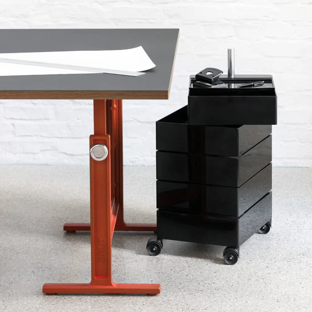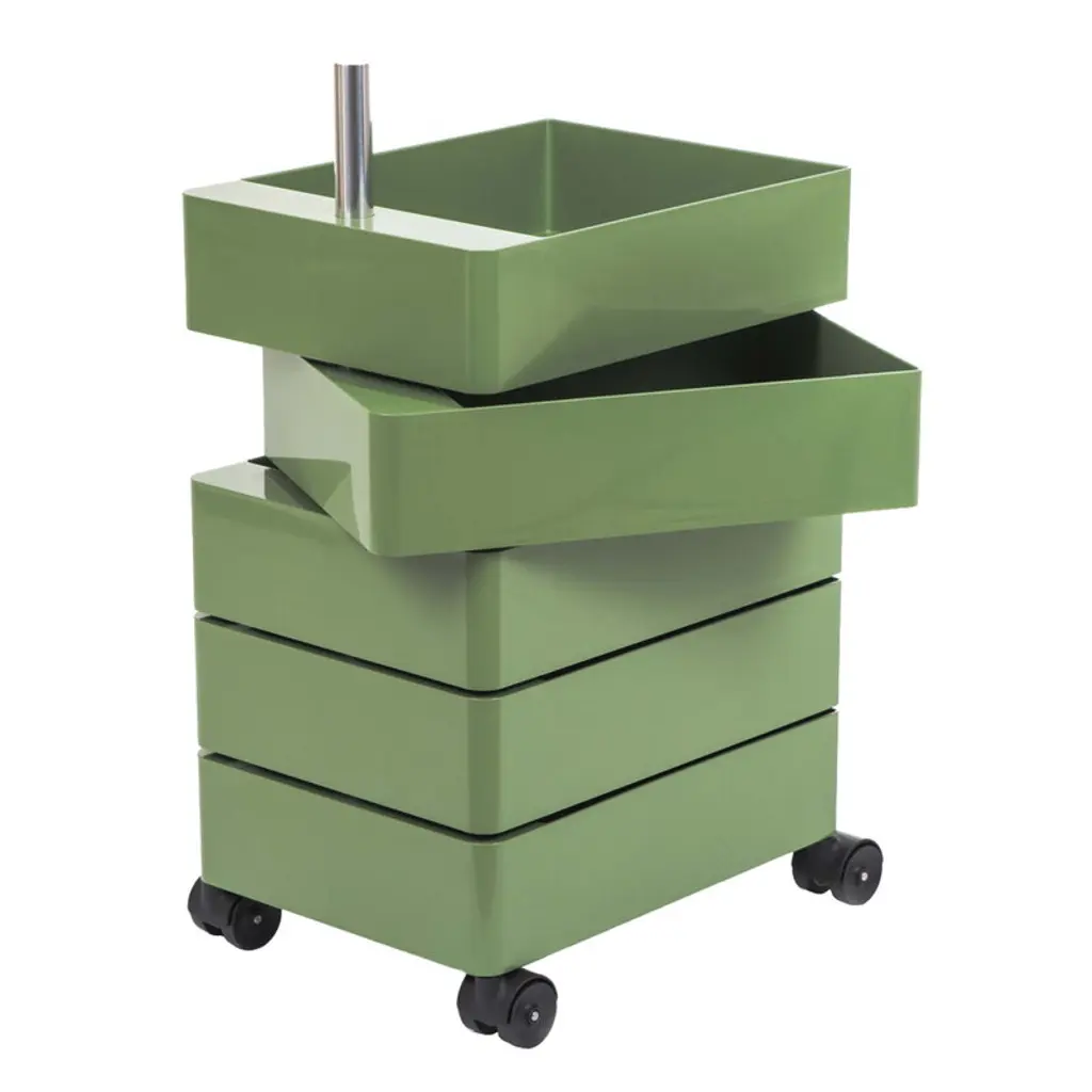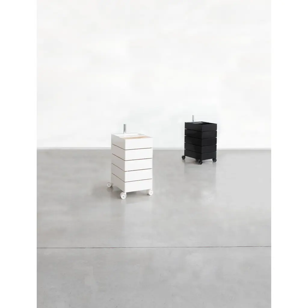 Magis' 360° drawer unit is a delightful way to add some much-needed extra space to your home office, kids' room or hallway. Designed by Konstantin Grcic, the drawer unit charms with its distinctive design: five boxes have been placed around an aluminum tube, right on top of each other. All five drawers rotate a full 360 degrees around the tube – hence the name of the storage unit. The 360° drawer unit is made of durable, shiny ABS plastic and has wheels underneath, so you can easily move it from one place to another if needed.